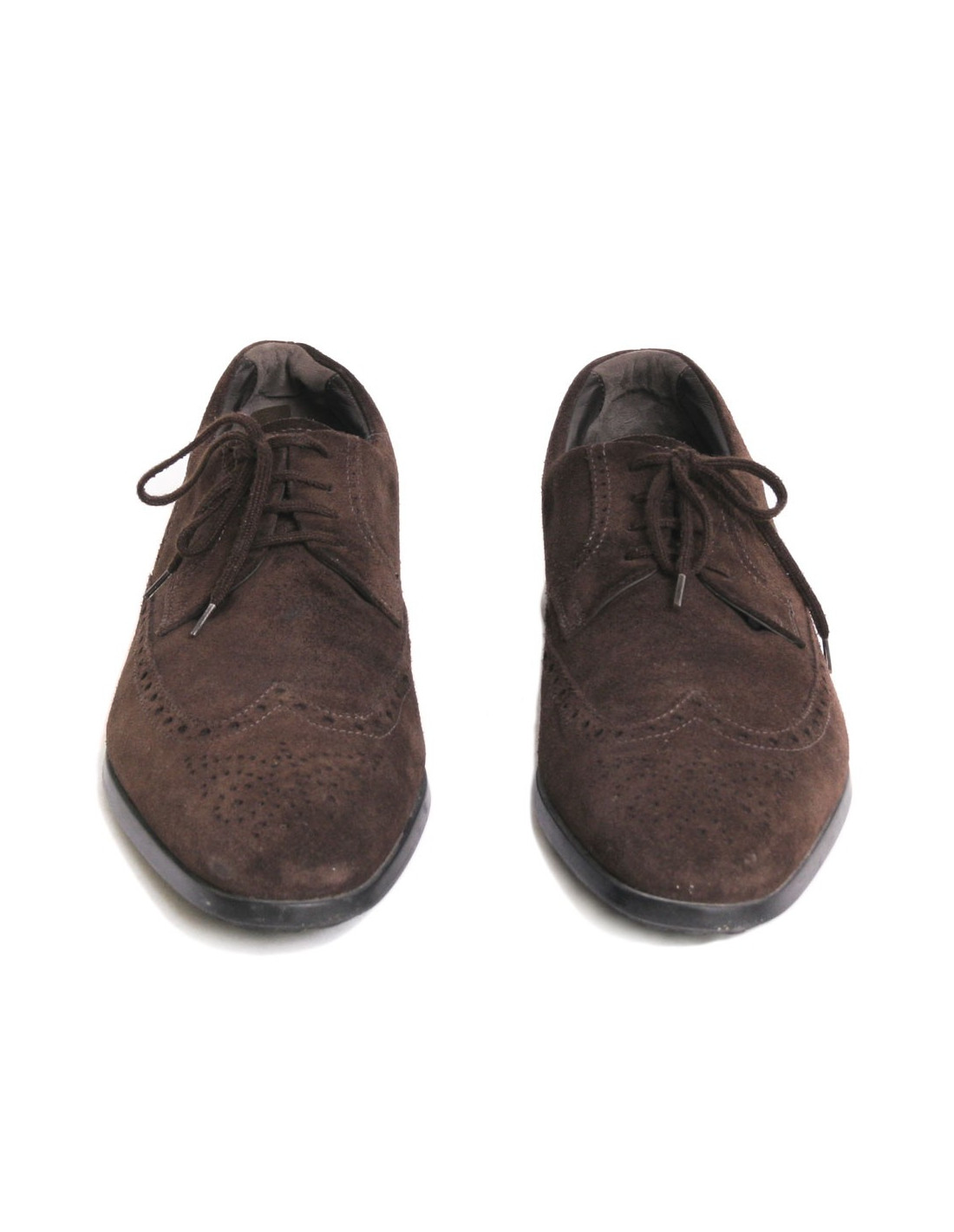Doublure et semelle en cuir, détail richelieu. Très bon état malgré une légère trace d'usure sur la partie arrière extérieure de la chaussure droite (voir photo)