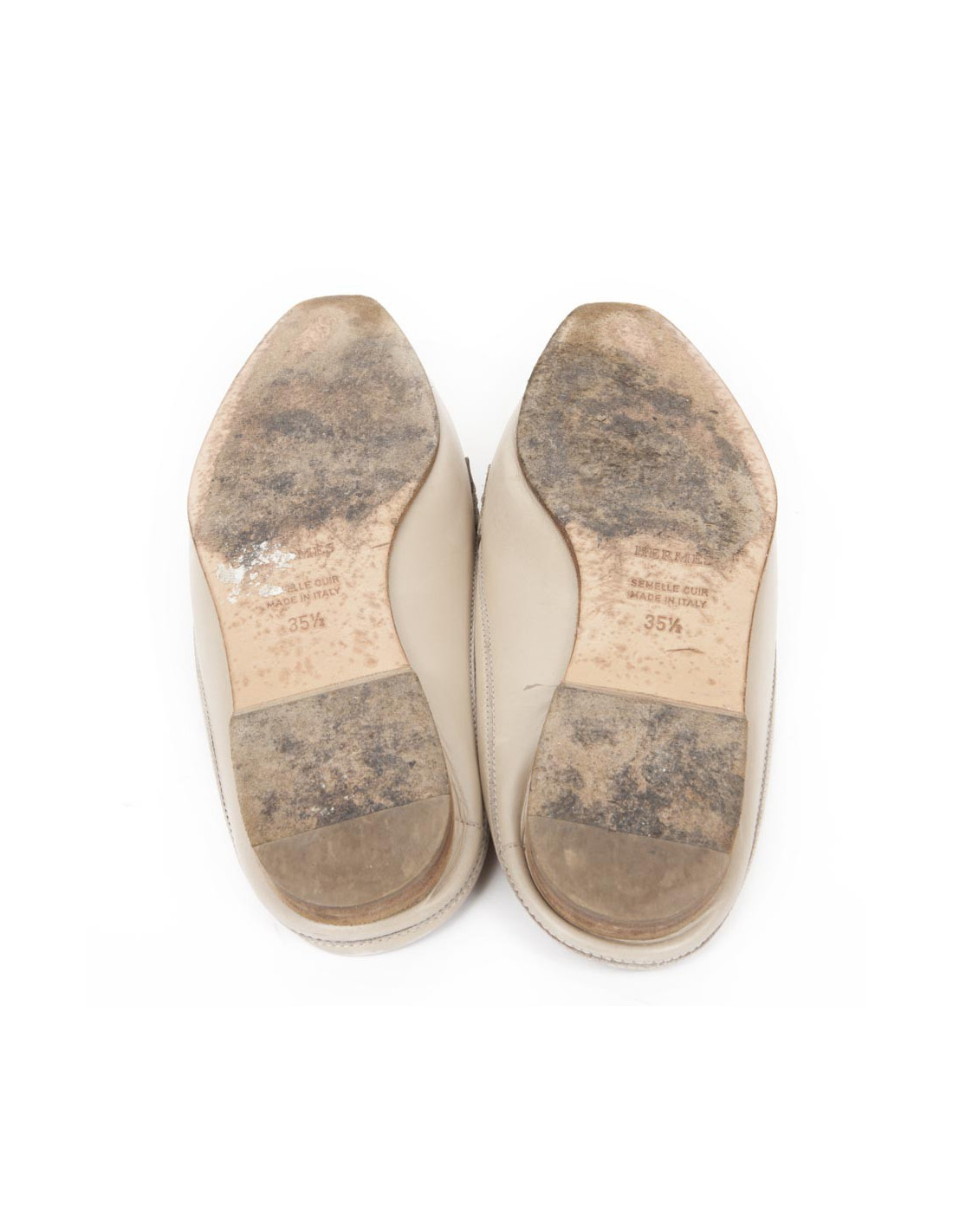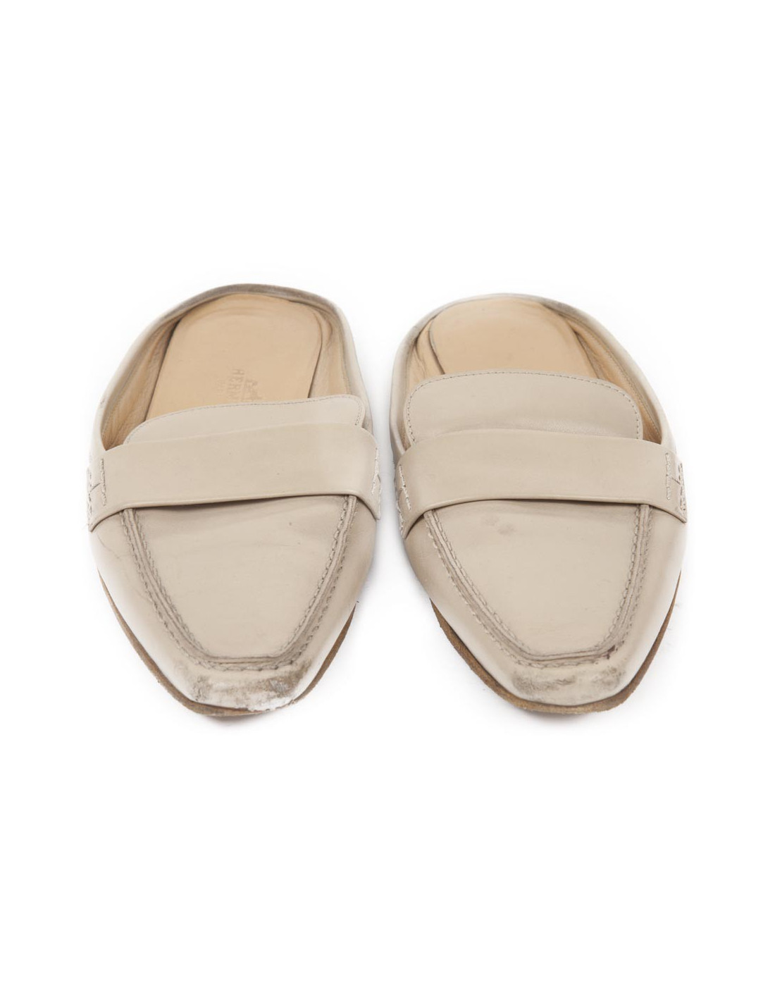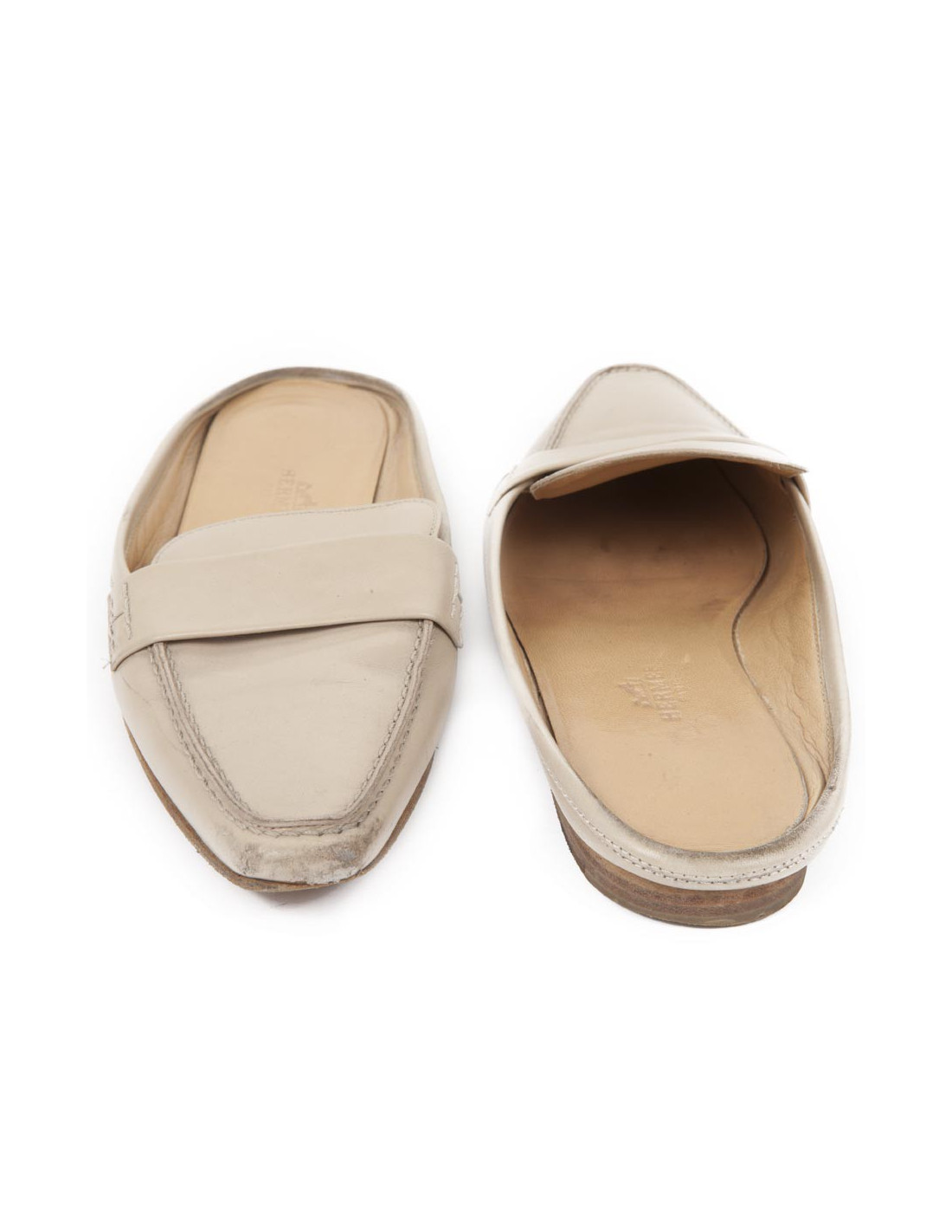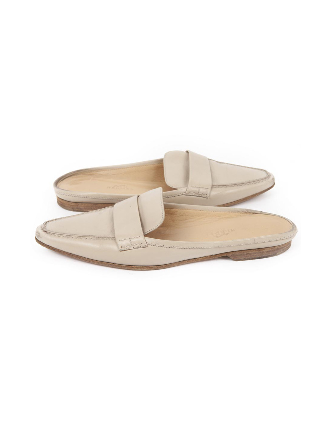 Mules Hermes en cuir beige t 35.5. L'intérieur est en cuir beige. En bon état, sur le bout des chaussures le cuir est légèrement rapé.