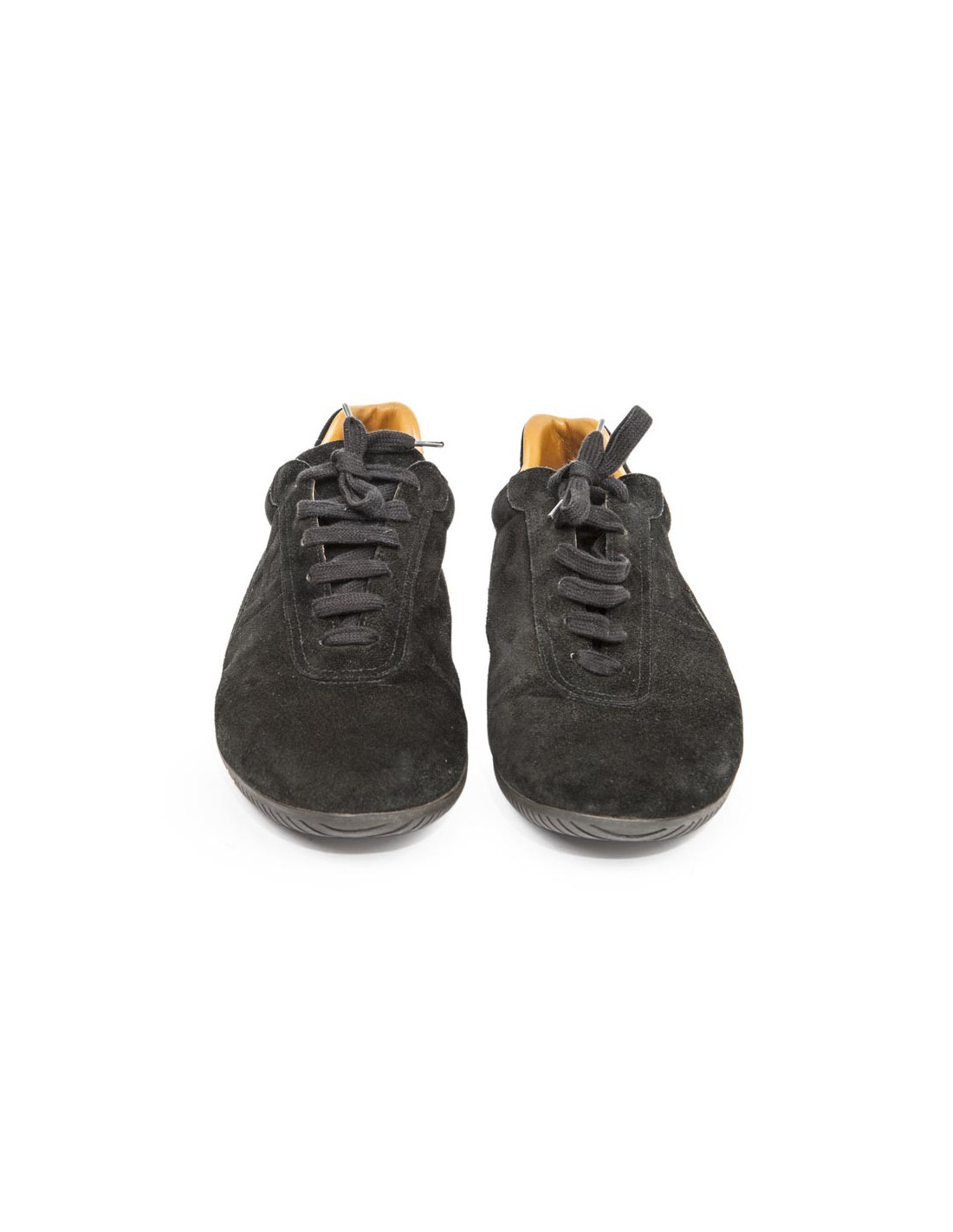 Sneakers à lacets Hermès en veau velours noir. Taille 44,5.Doublé en cuir souple gold H.