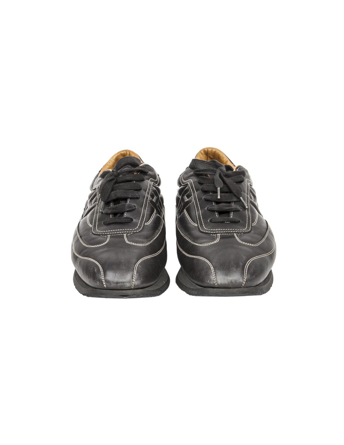 Sneakers à lacets Hermès pour Homme. En cuir noir. intérieur doublé en cuir gold H.