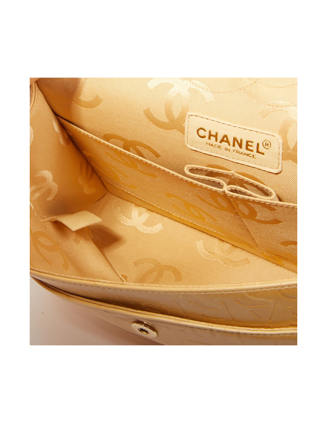 Sac Chanel siglé beige embossé de logos "Chanel" "CC"