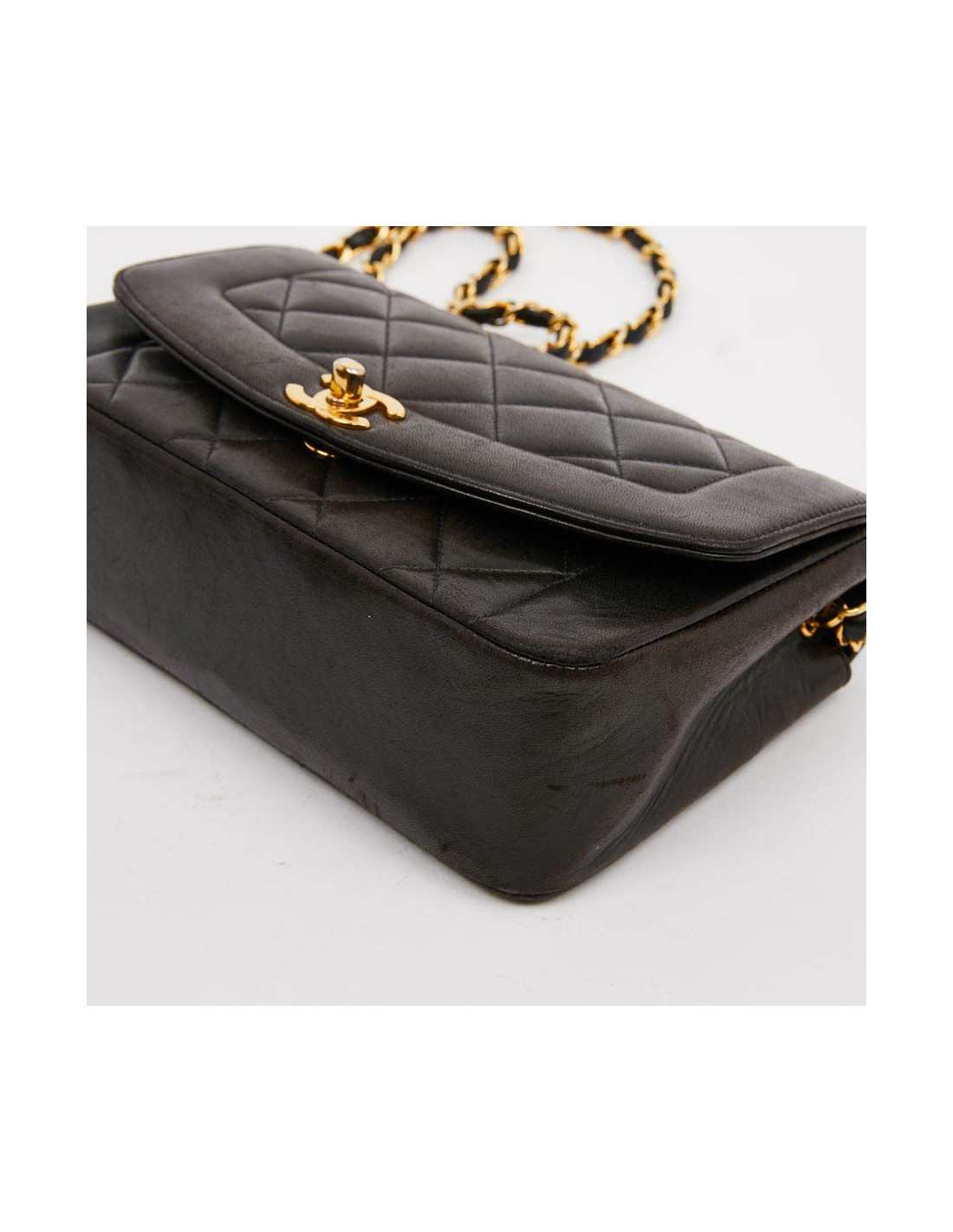 On ADORE ce petit Timeless vintage matelassé en cuir d’agneau lisse marron. La bijouterie est dorée. Il se porte à l'épaule avec sa chaine entrelacée de cuir. Il est en très bon état, les coins sont en parfait état mais quelques marques d'usure d'usage sur le cuir sont visibles.