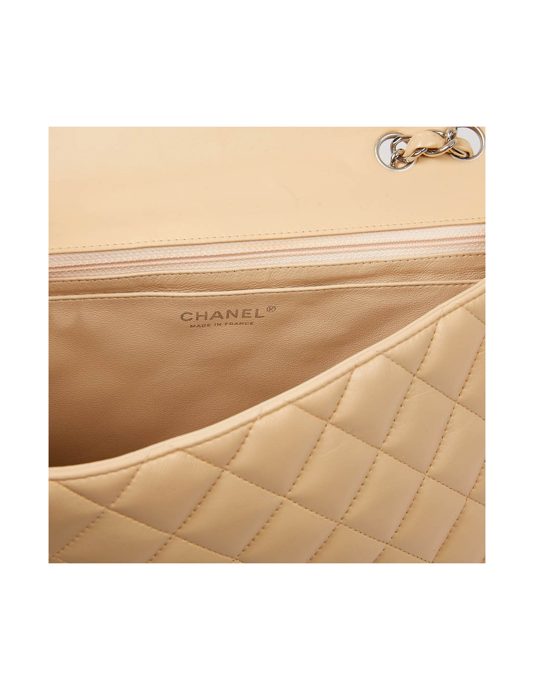 Sac à rabat CHANEL cuir d'agneau beige