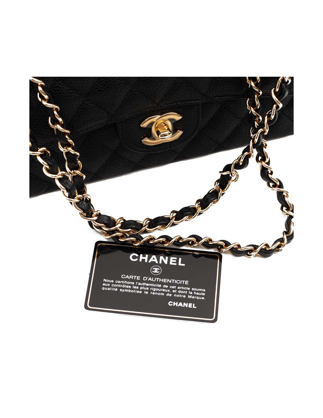 Iconique CHANEL sac à main Timeless noir, en détail :