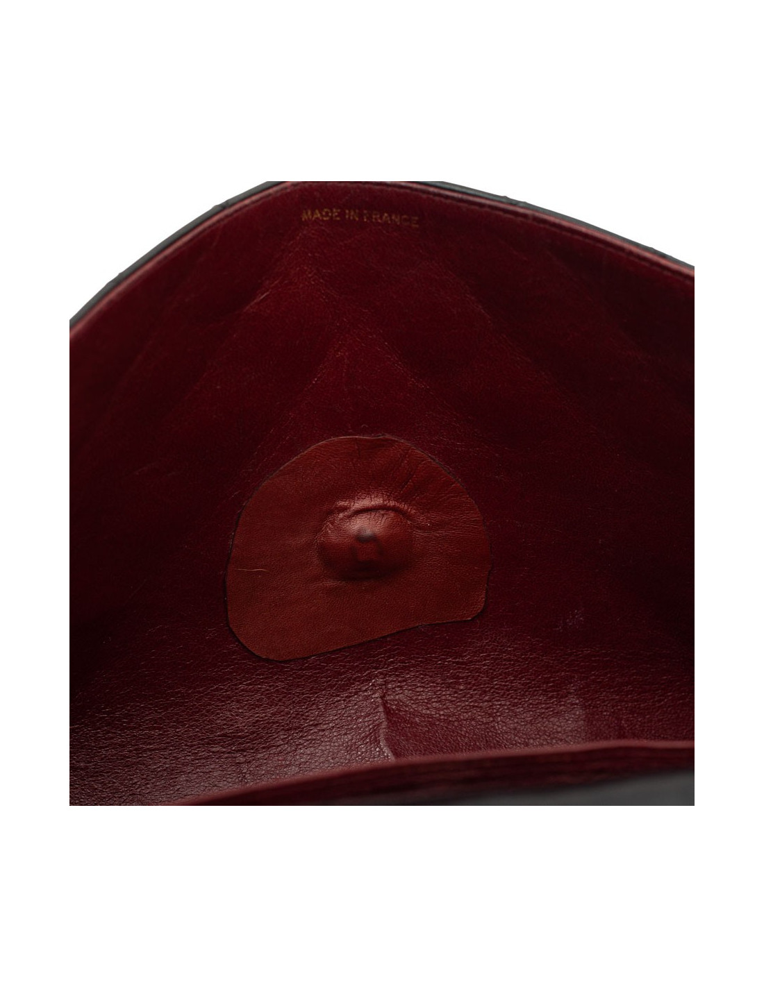 La bijouterie est dorée (micro rayures sur la dorure). L'intérieur est en cuir bordeaux avec deux poches plaquées dont 1 zippée.