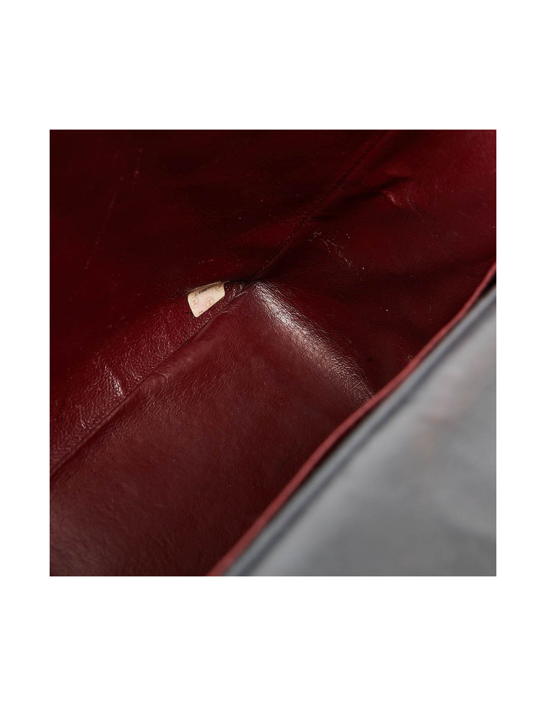 Le rabat est doublé en cuir de même couleur. La doublure intérieure est en cuir lisse bordeaux avec 2 poches dont une zippée. Il a été fabriqué en France. Il a une grosse capacité de remplissage. Il se porte à l'épaule ou croisé.