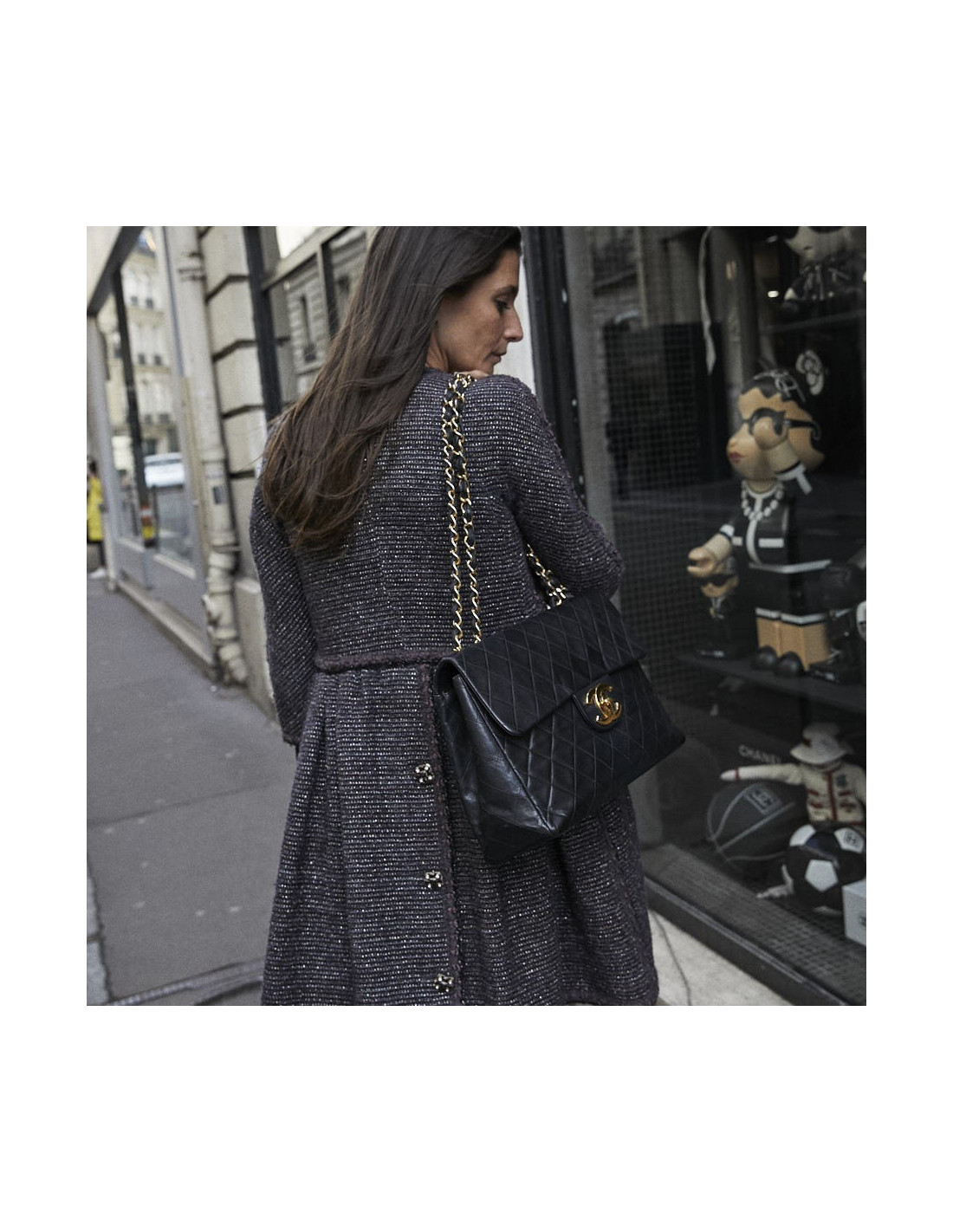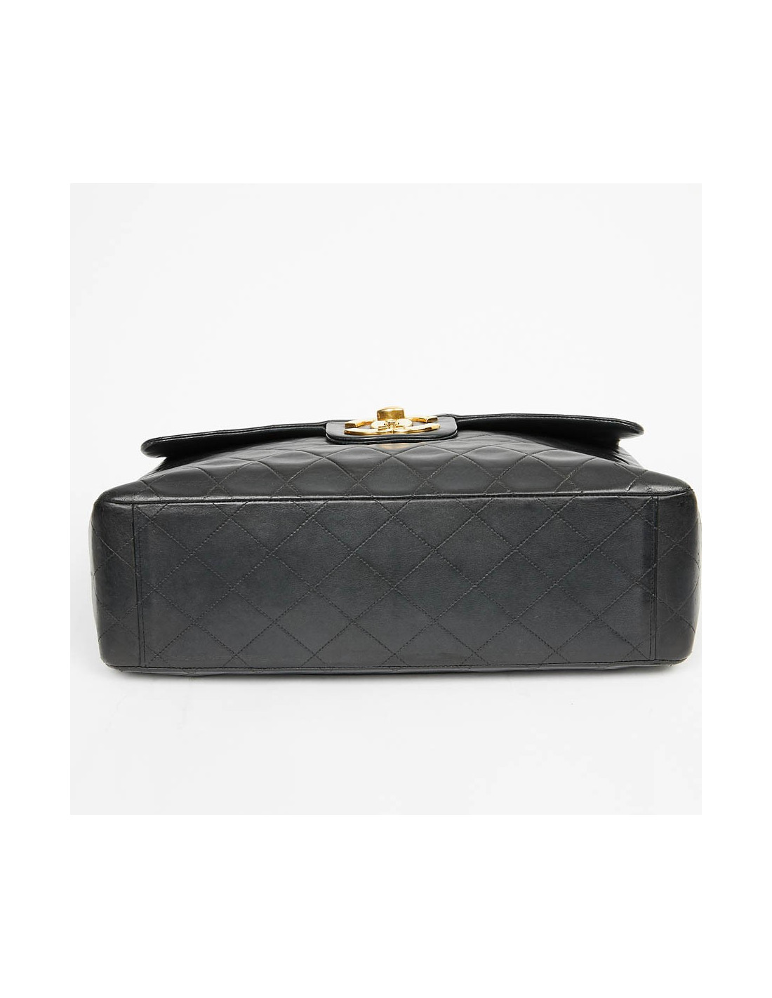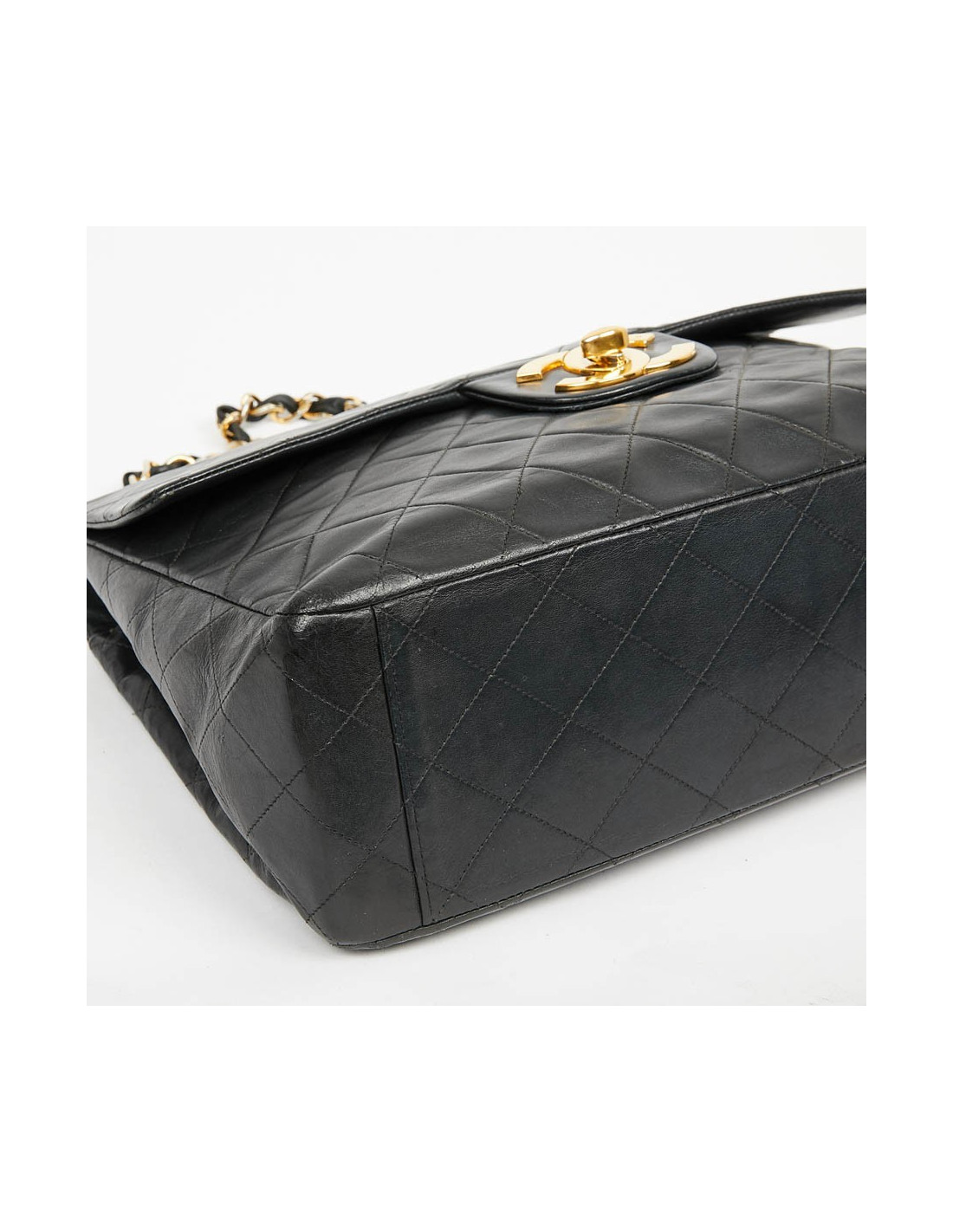 Ce maxi jumbo est le symbole des années Chanel des années 90'. Le gros double "C" est en métal or vintage. Il représente l'époque des top models qui le portaient lors des défilés qui faisaient sensation.