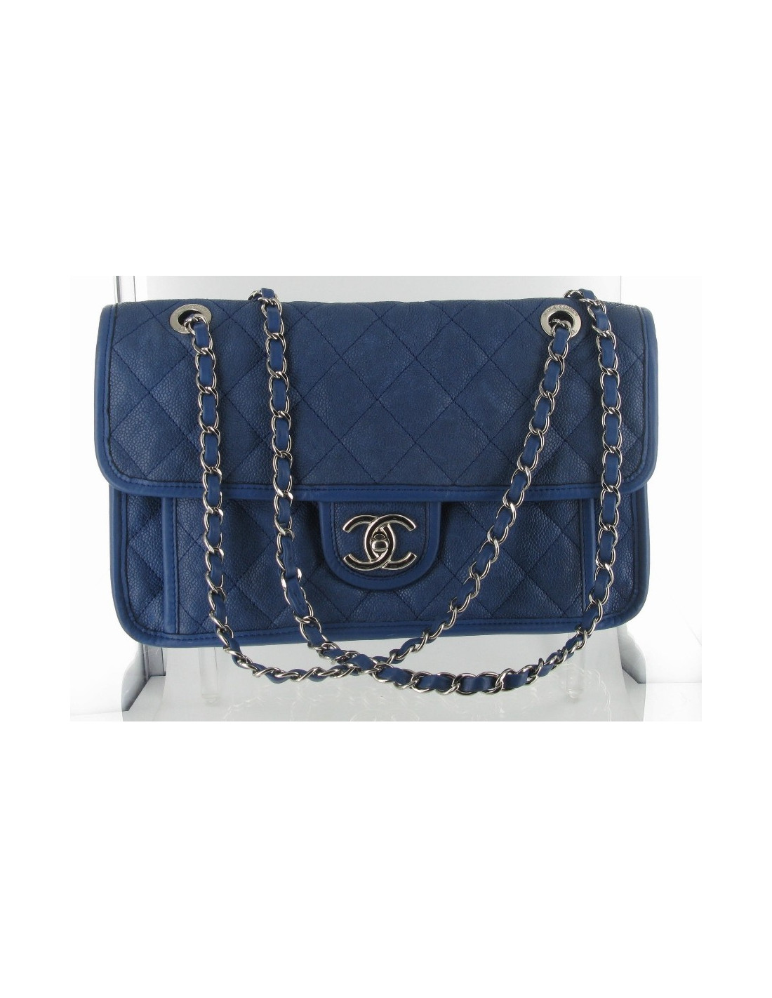 Sac cuir grainé bleu CHANEL