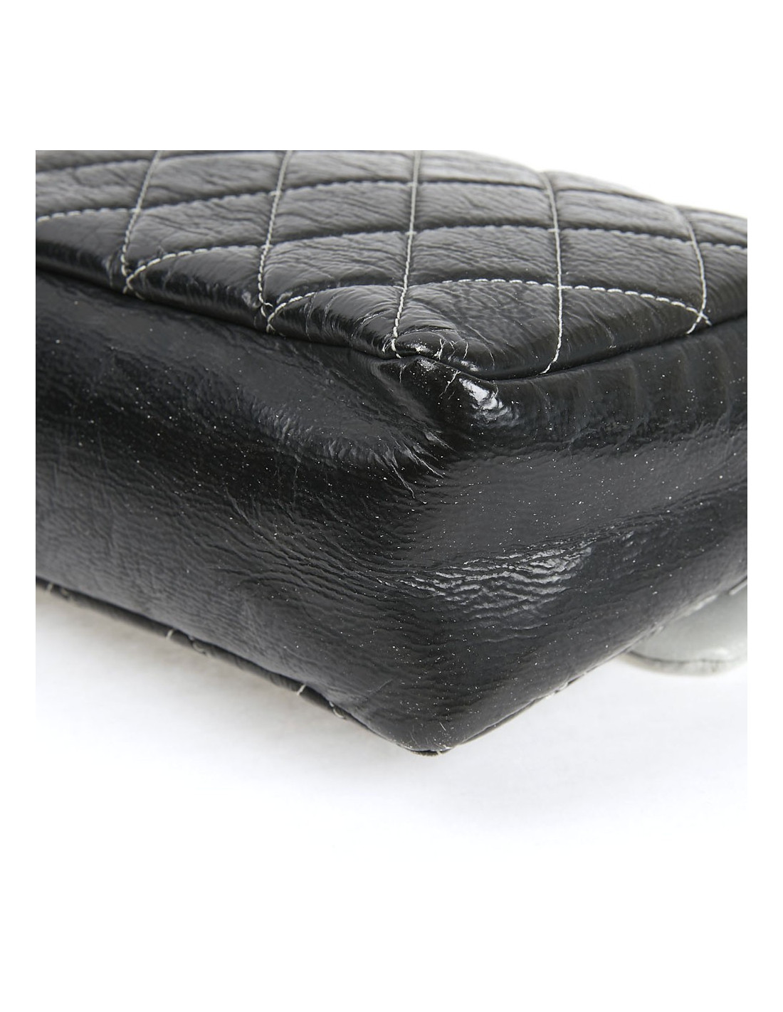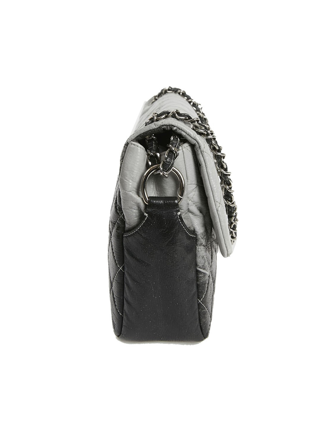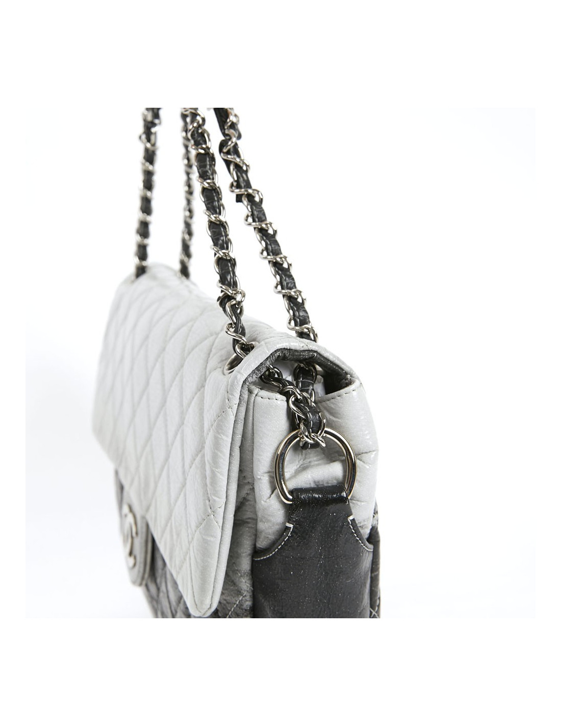 Collector. Sac à main Chanel en cuir semi verni en dégradé noir et gris. Le cuir est matelassé. En très bon état. Il n’a pas de double rabat. Il se porte à l’épaule. Il se ferme par un bouton pression.