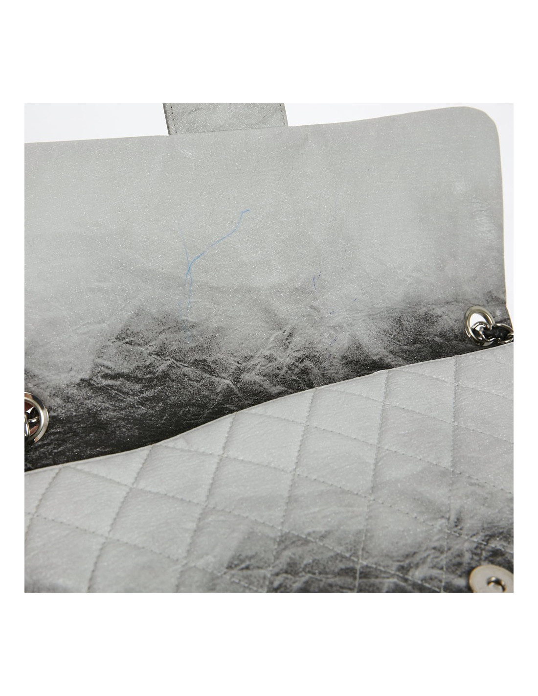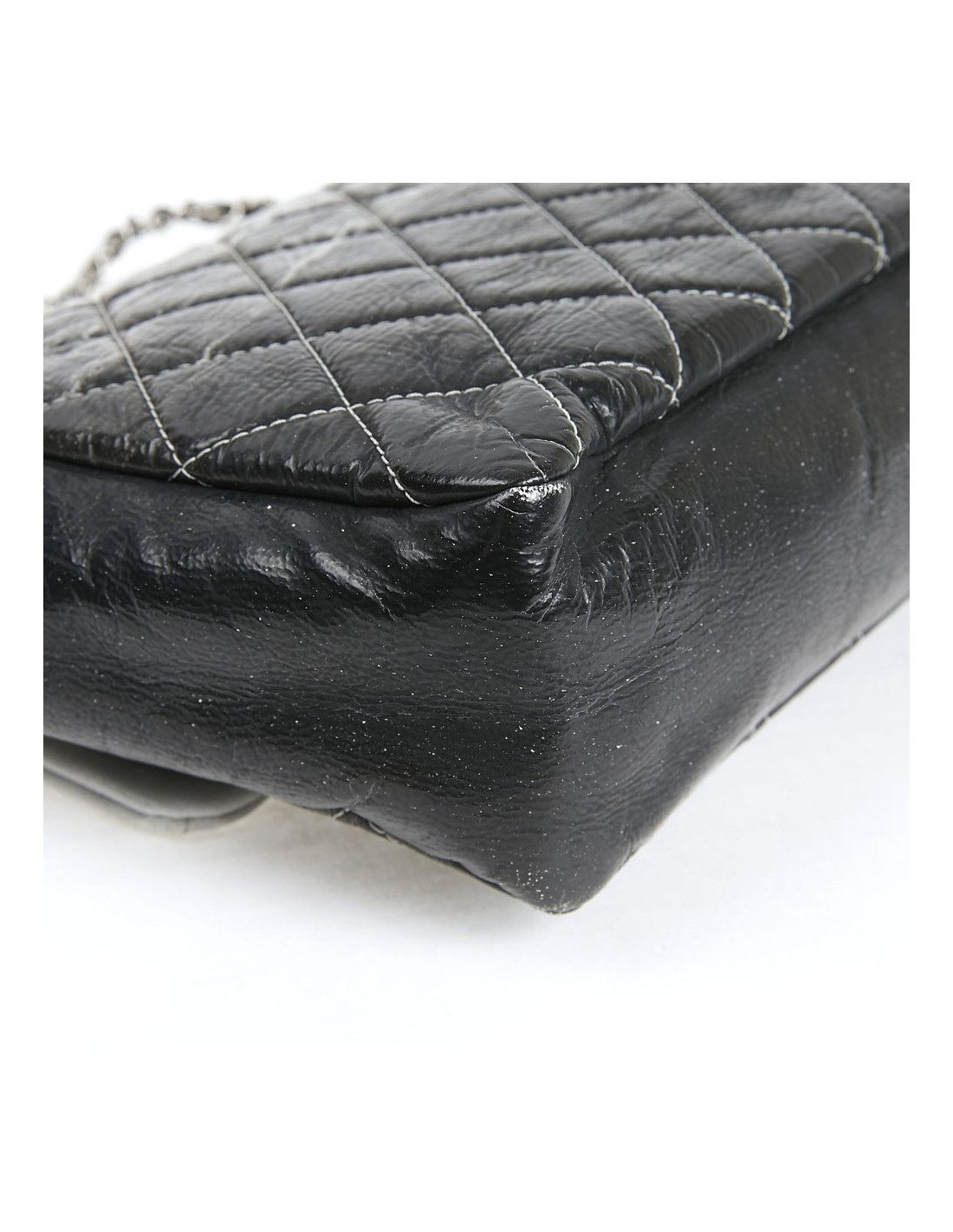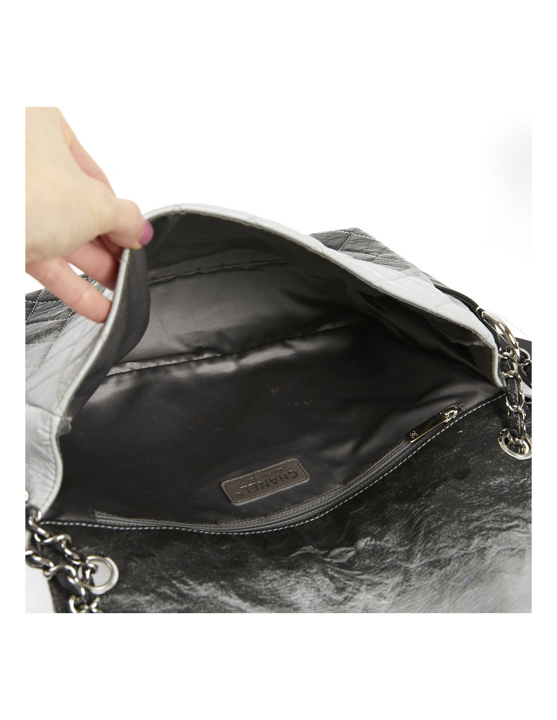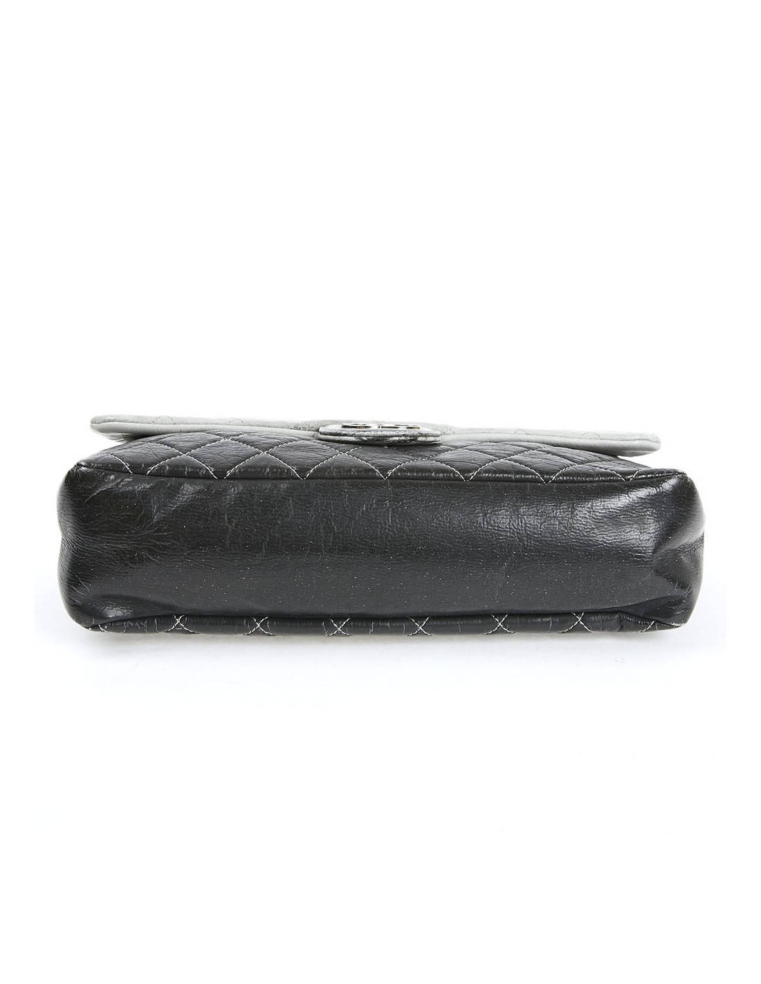 Collector. Sac à main Chanel en cuir semi verni en dégradé noir et gris. Le cuir est matelassé. En très bon état. Il n’a pas de double rabat. Il se porte à l’épaule. Il se ferme par un bouton pression.