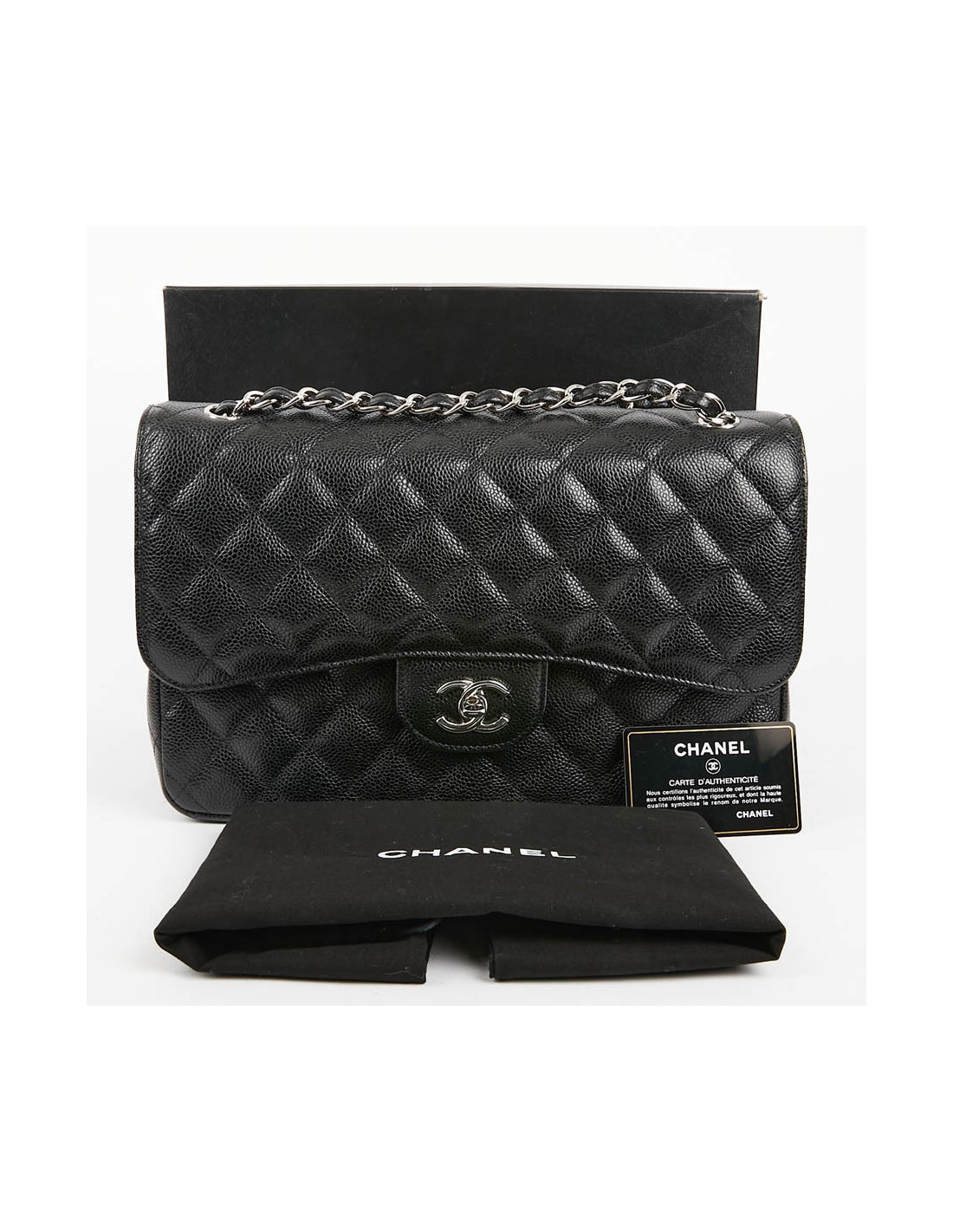 Jumbo Chanel cuir caviar noir