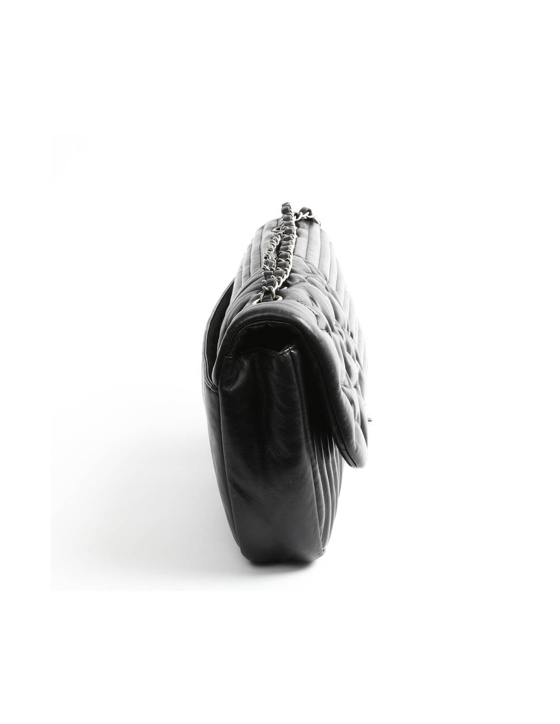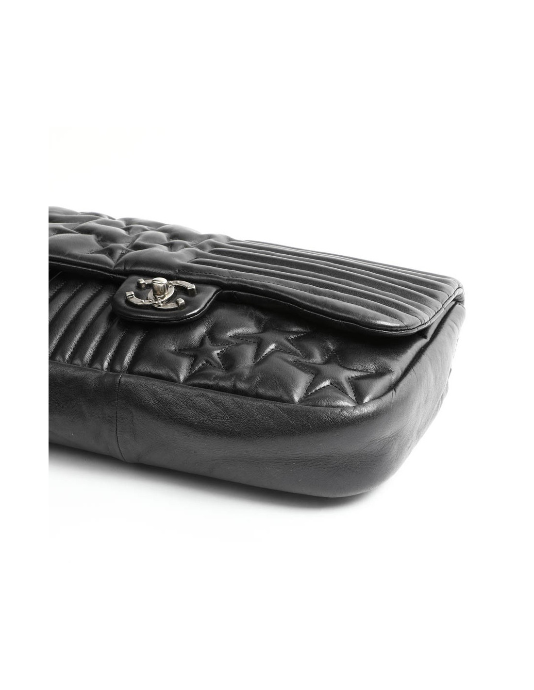 L'intérieur est en tissu noir avec 2 poches dont une zippée. Le plus de ce sac, le cuir sous le rabat est matelassé pour rappeler le classicisme de la Maison Chanel .