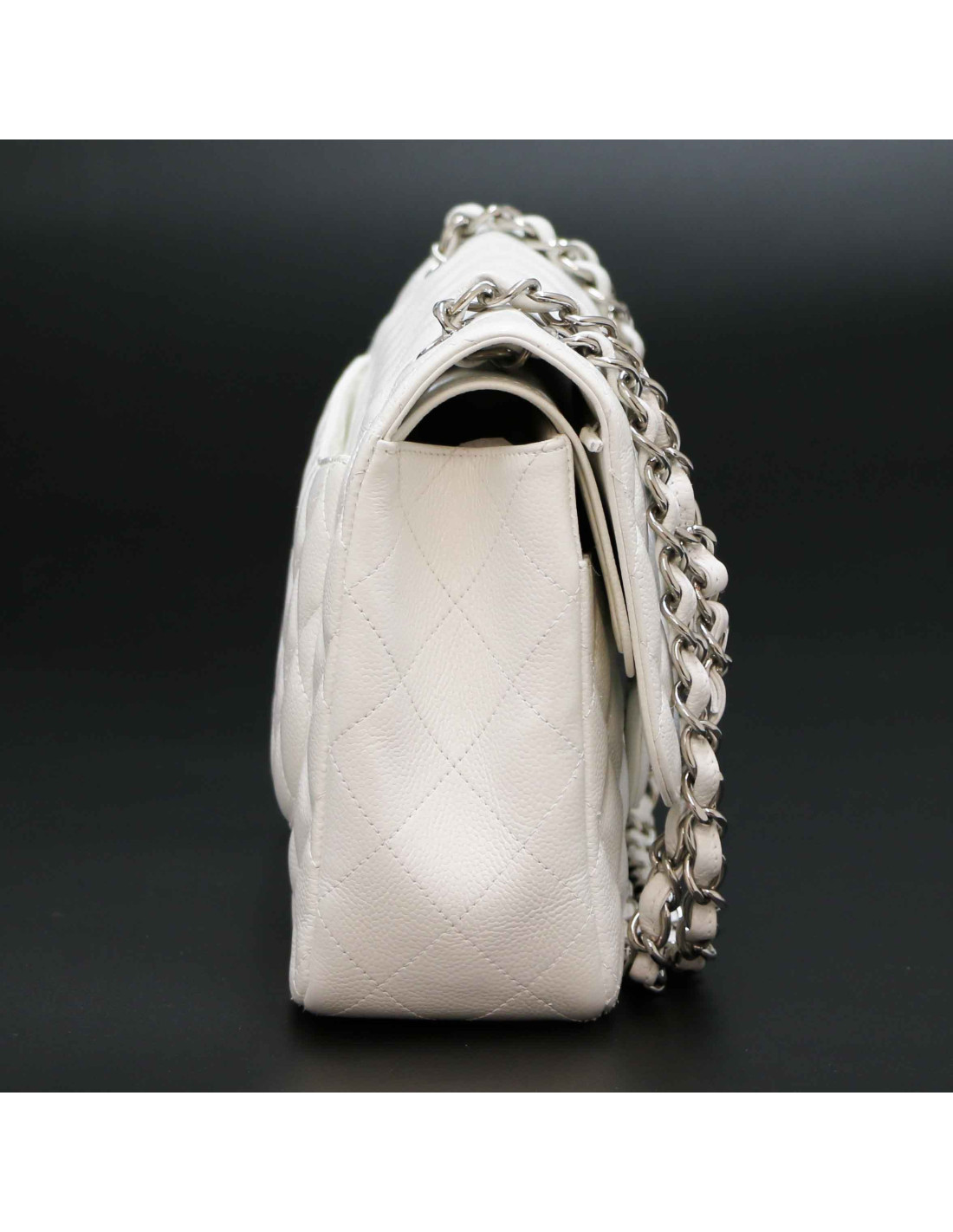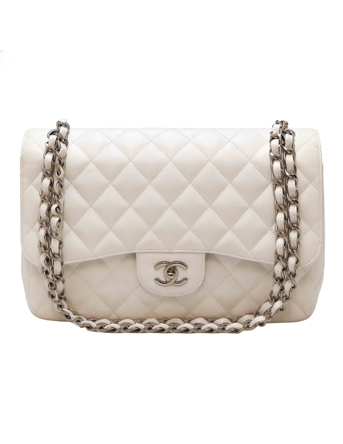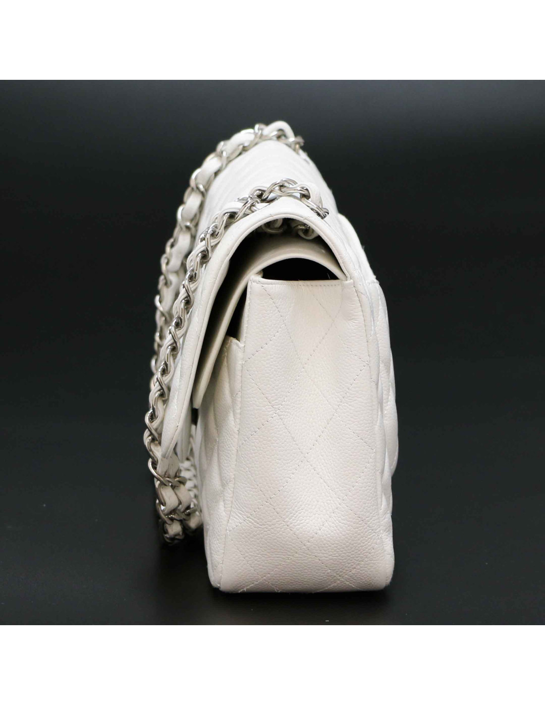 Jumbo CHANEL cuir grainé blanc