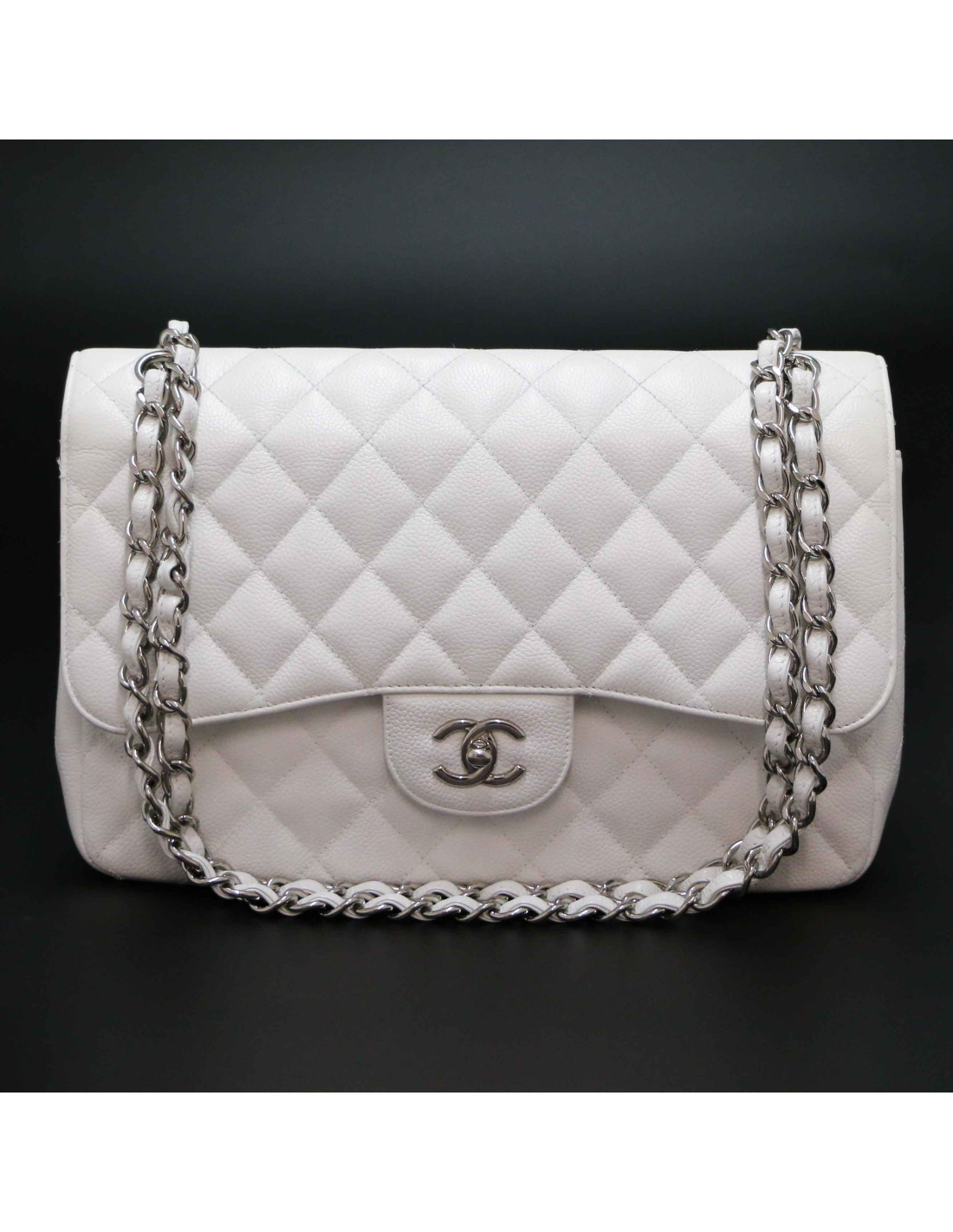 Sac Jumbo CHANEL cuir caviar blanc