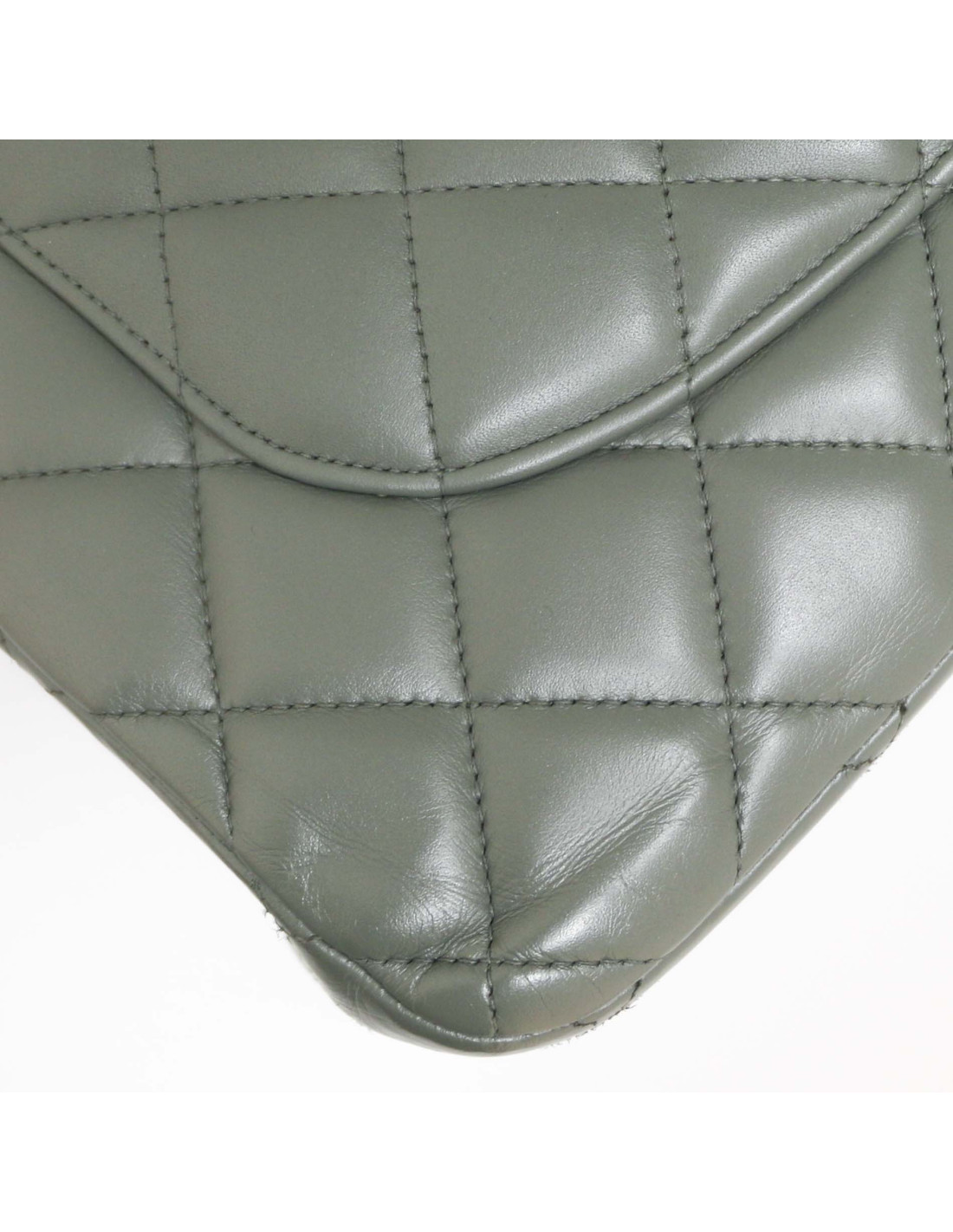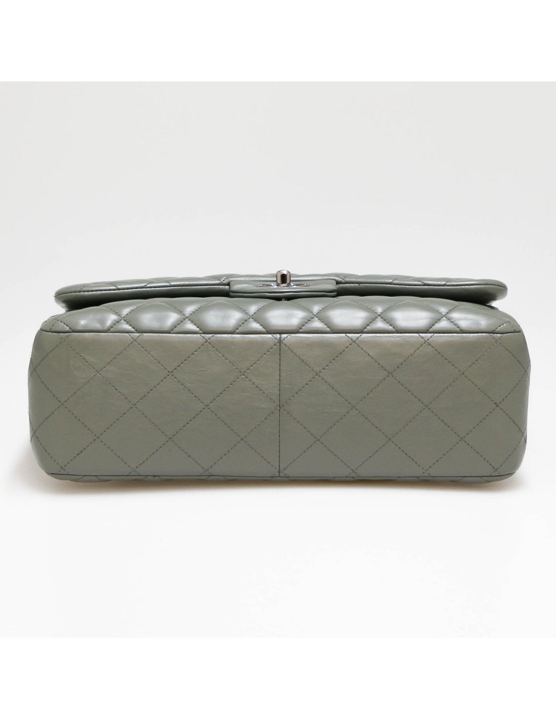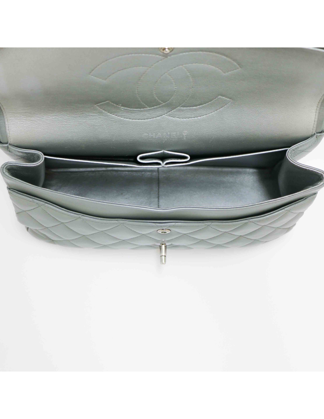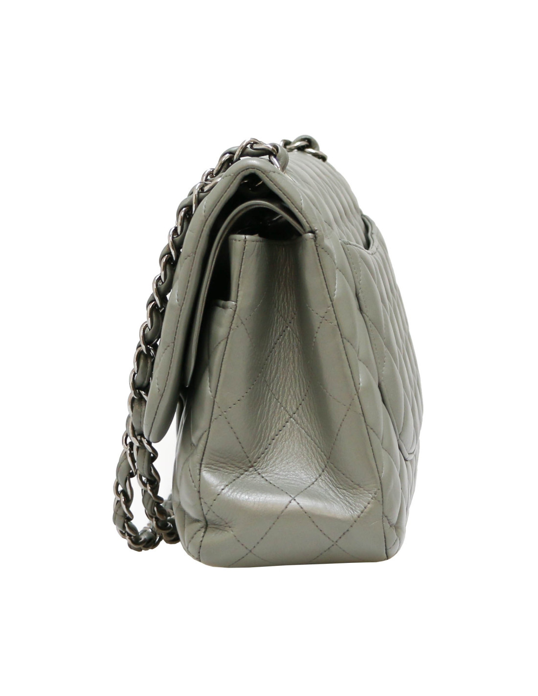 Jumbo CHANEL cuir lisse matelassé gris