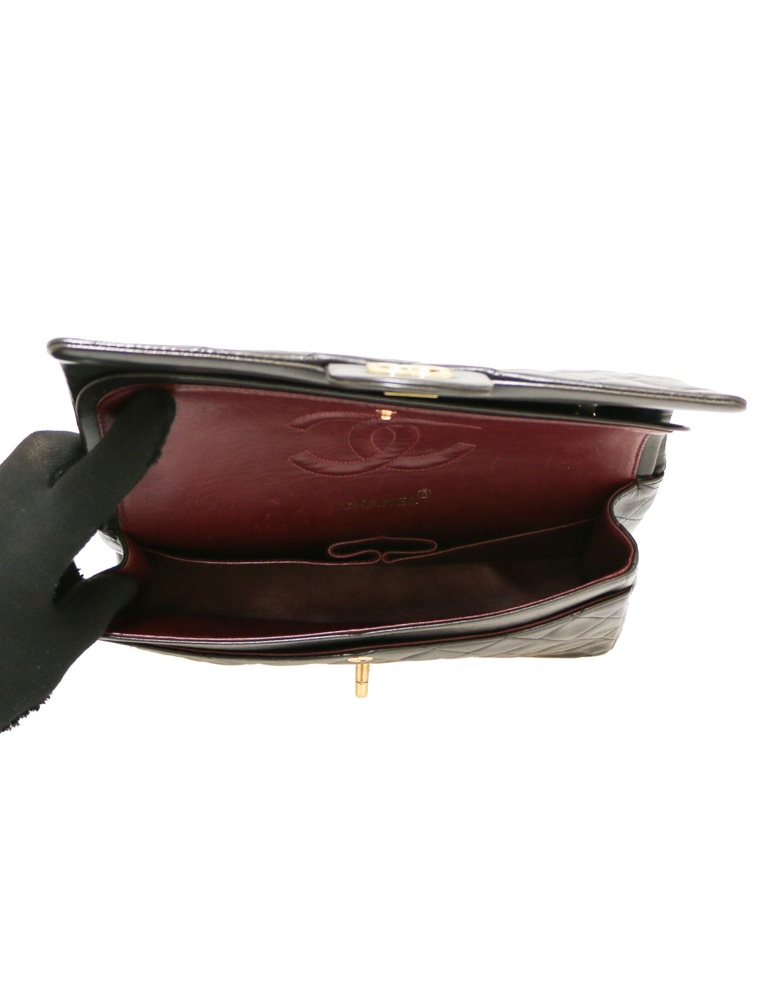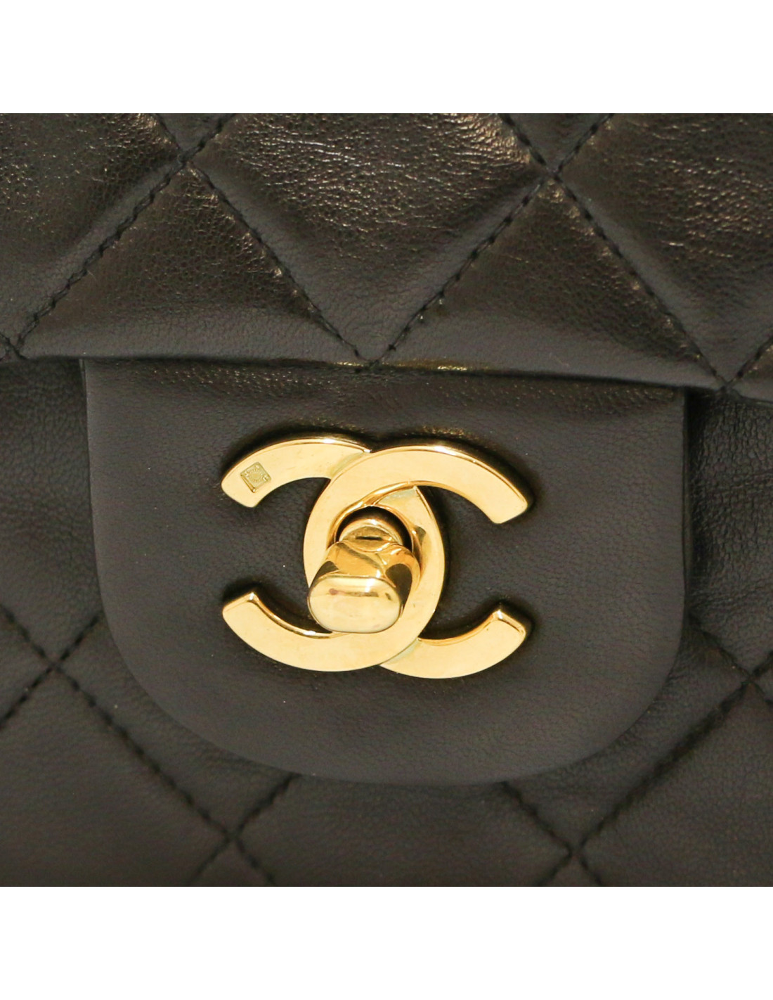 Sac Chanel cuir d'agneau matelassé noir vintage