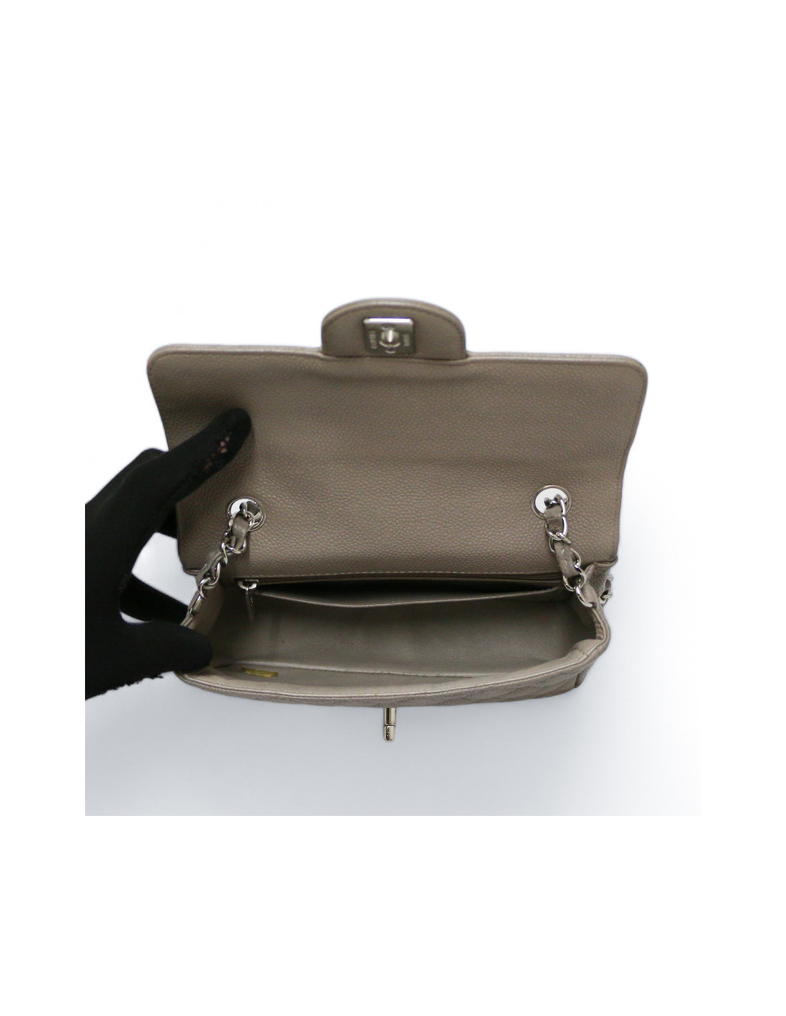Mini timeless CHANEL gris cuir caviar