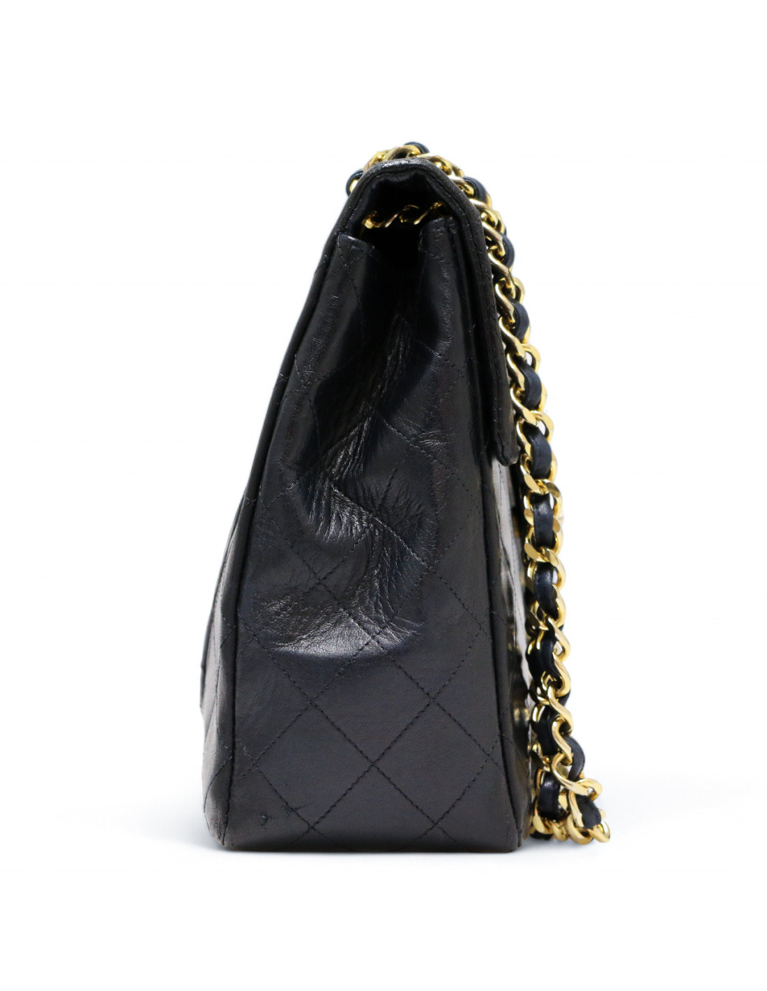 Détails : Grand sac vintage matelassé à simple rabat avec un fermoir CC. Les coins ne présentent aucune usure. Il peut se porter à l'épaule ou en bandoulière. Une poche plaquée se trouve à l'arrière du sac. La doublure intérieure est en bon état avec deux poches, dont une zippée.