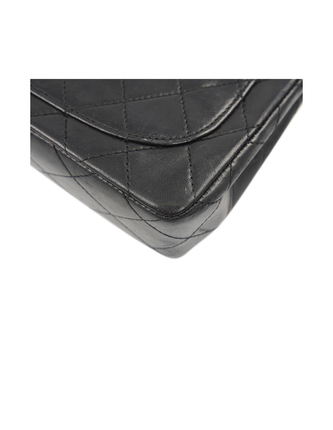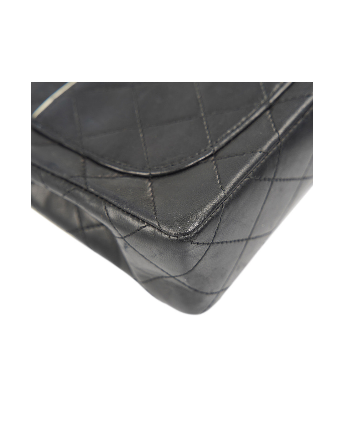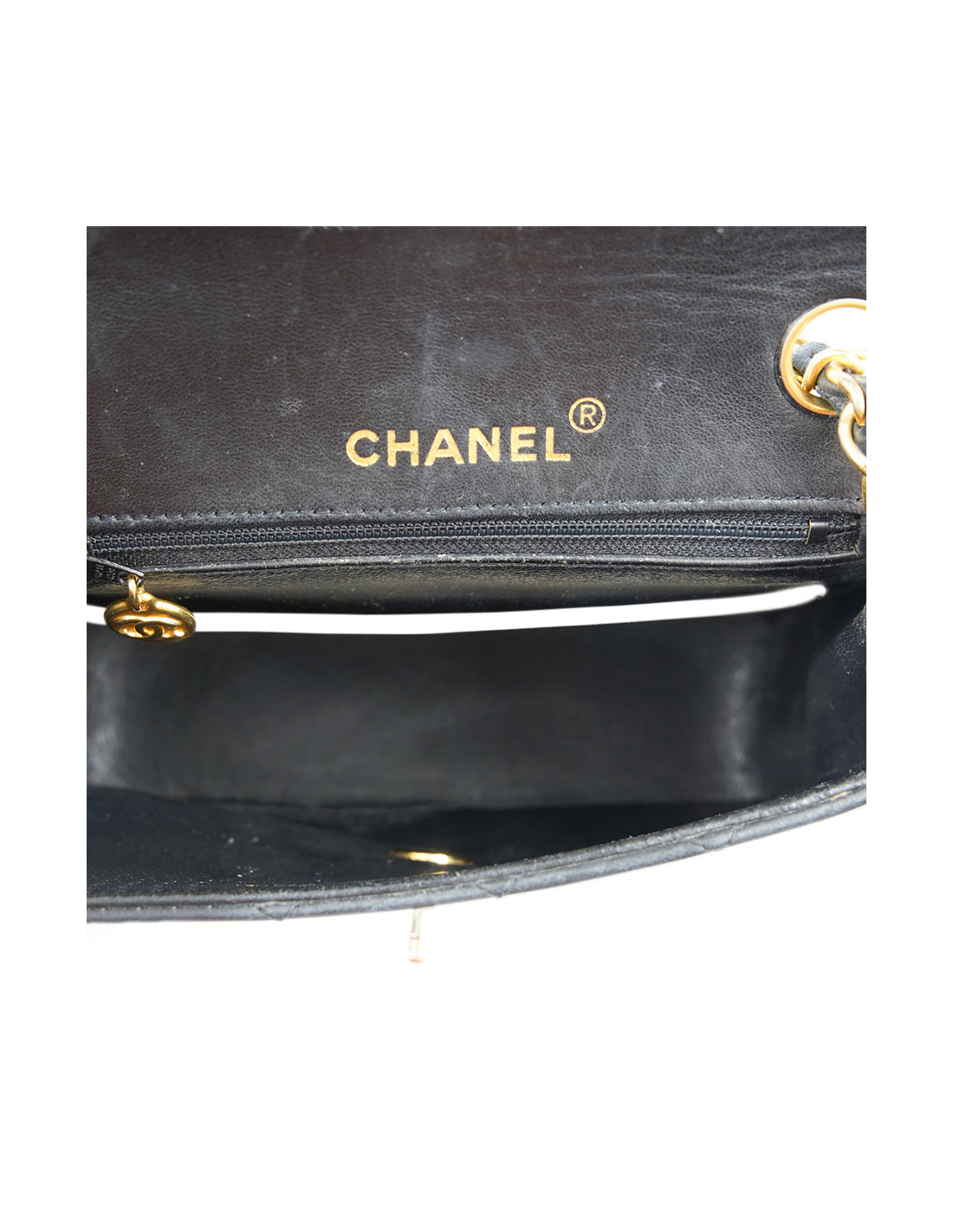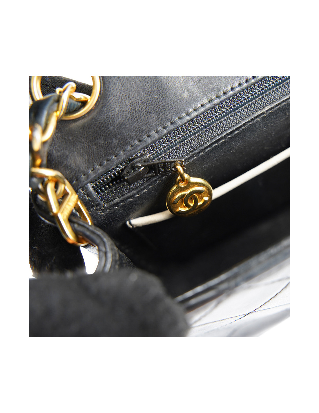 Détails : sac gansé de blanc, rabat simple, une poche plaquée à l'arrière du sac.