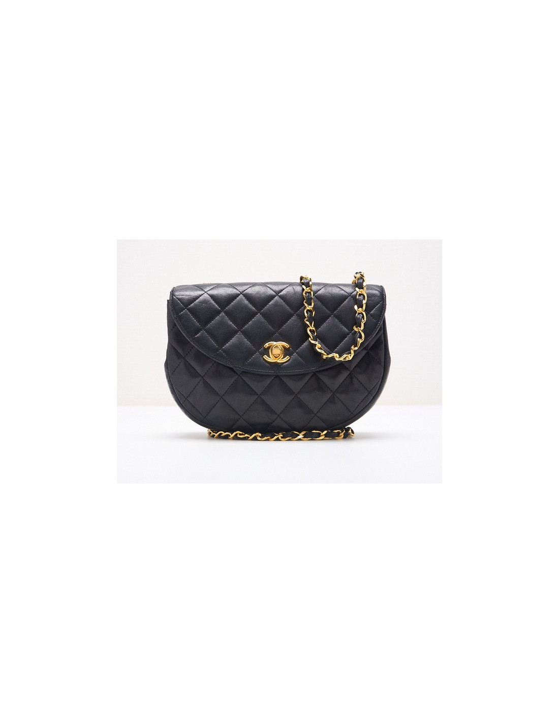 Sac Chanel cuir d'agneau matelassé noir vintage