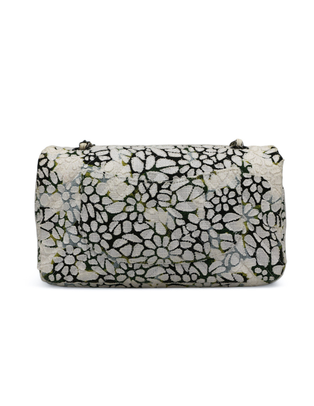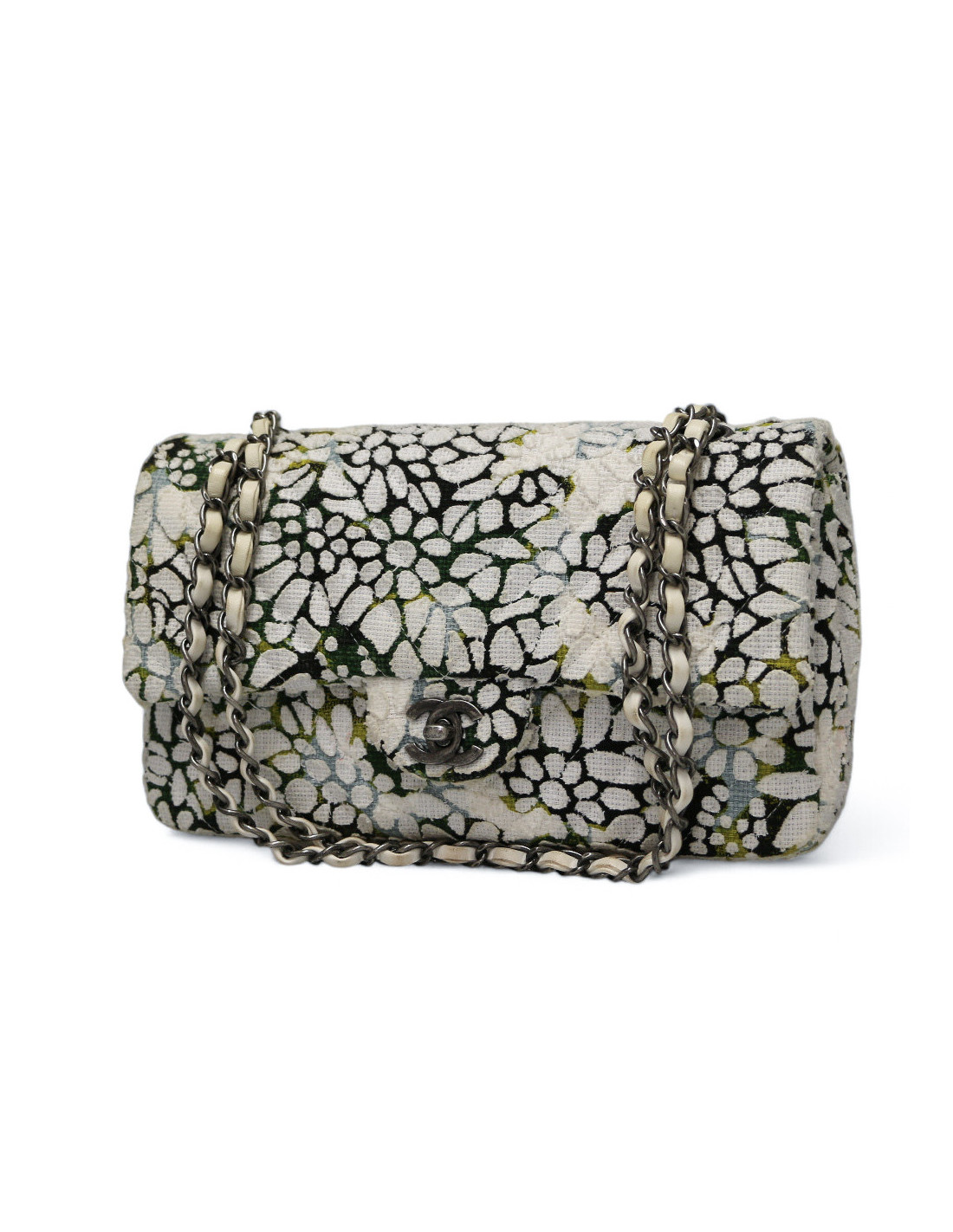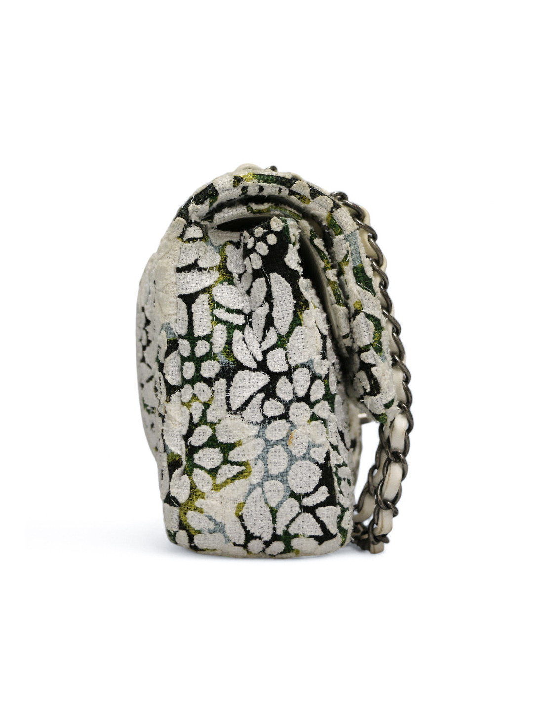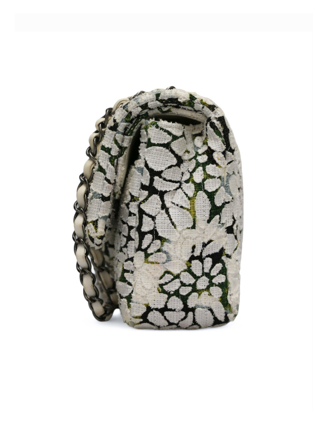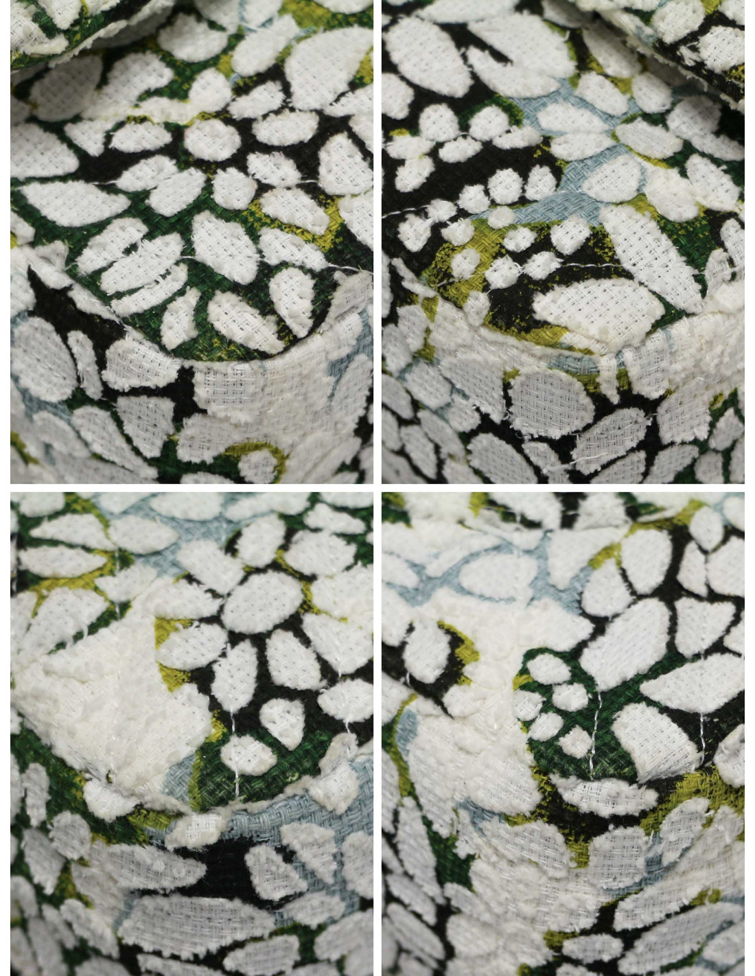 Détails : double rabat, chevron, imprimé fleuri en tweed