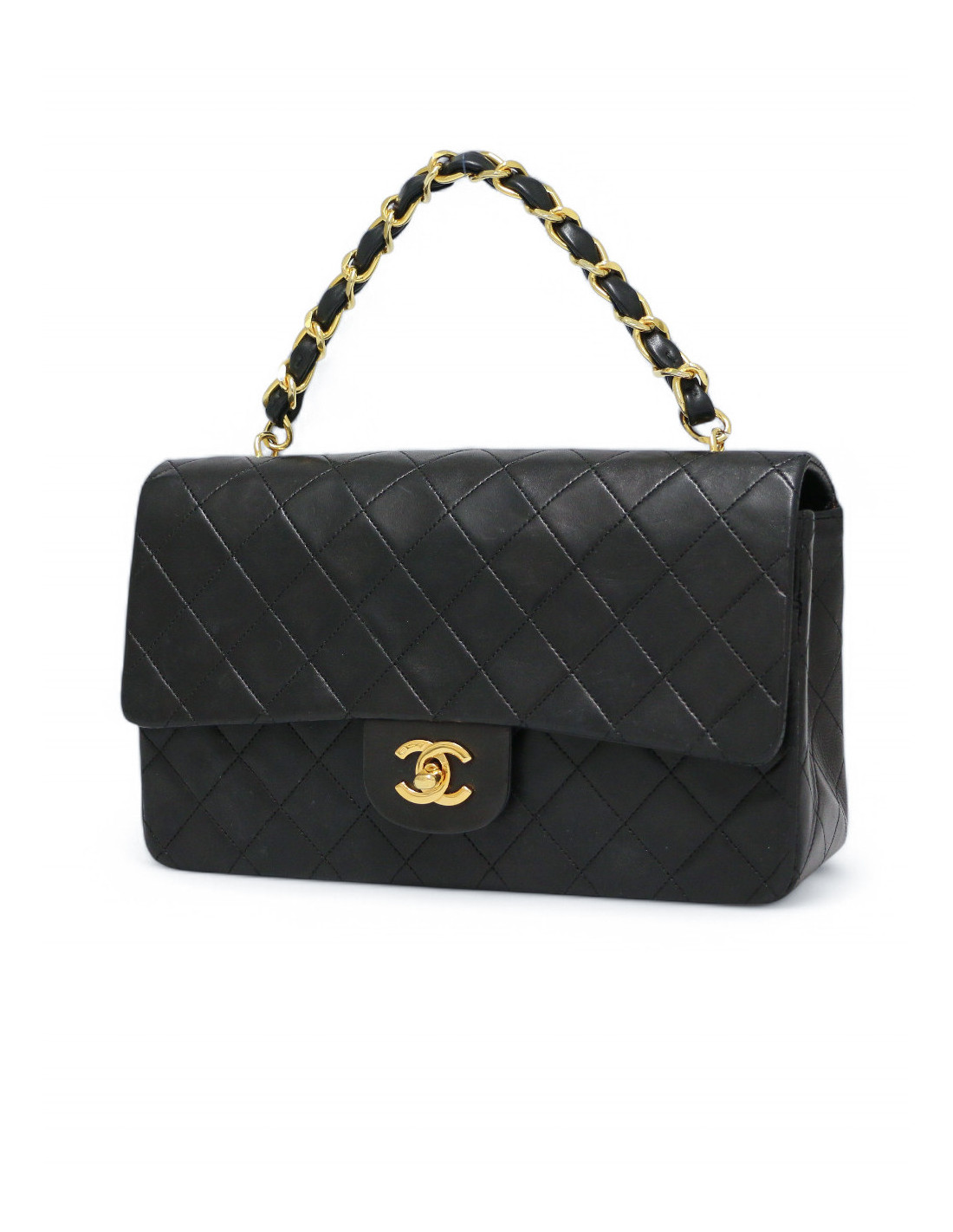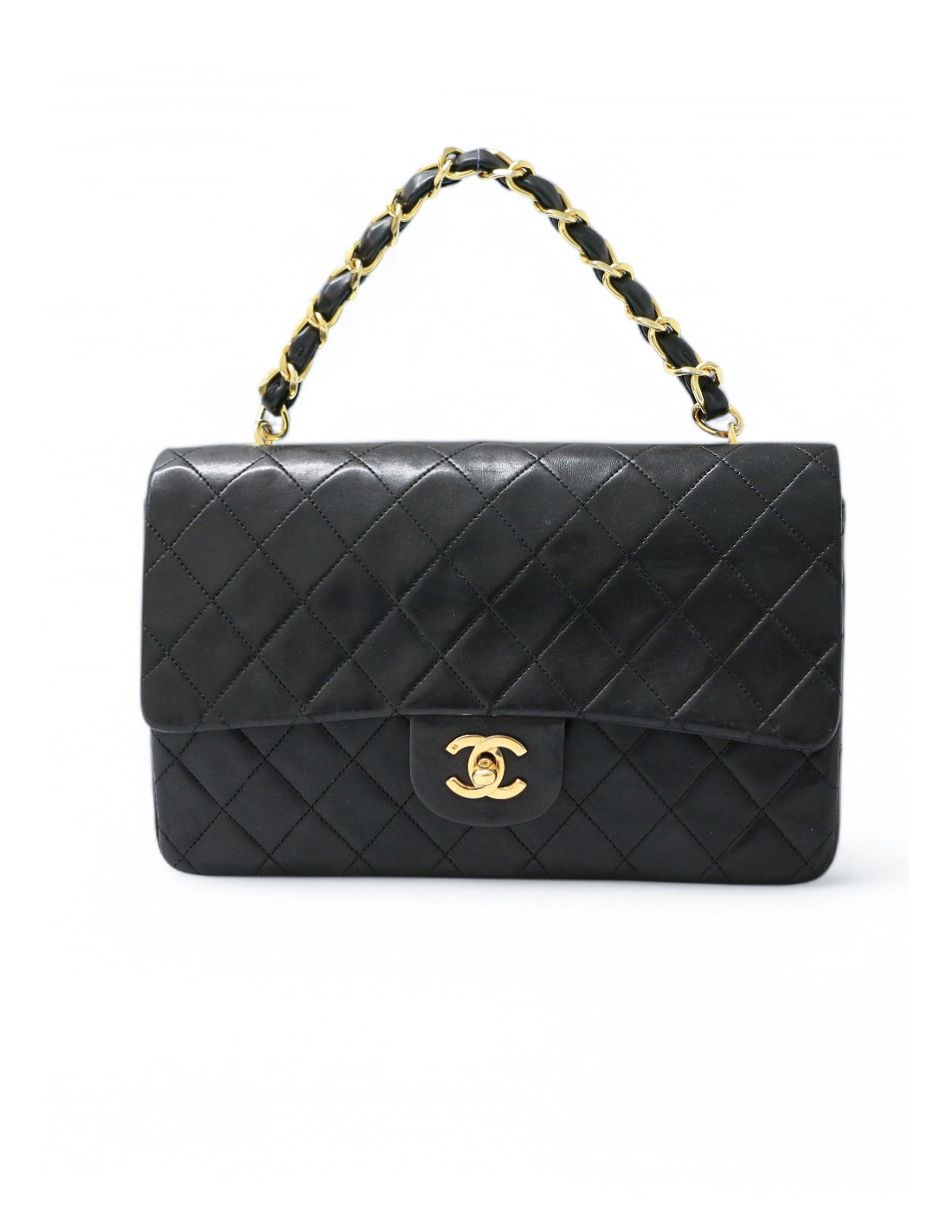 Sac porté main CHANEL matelassé noir agneau