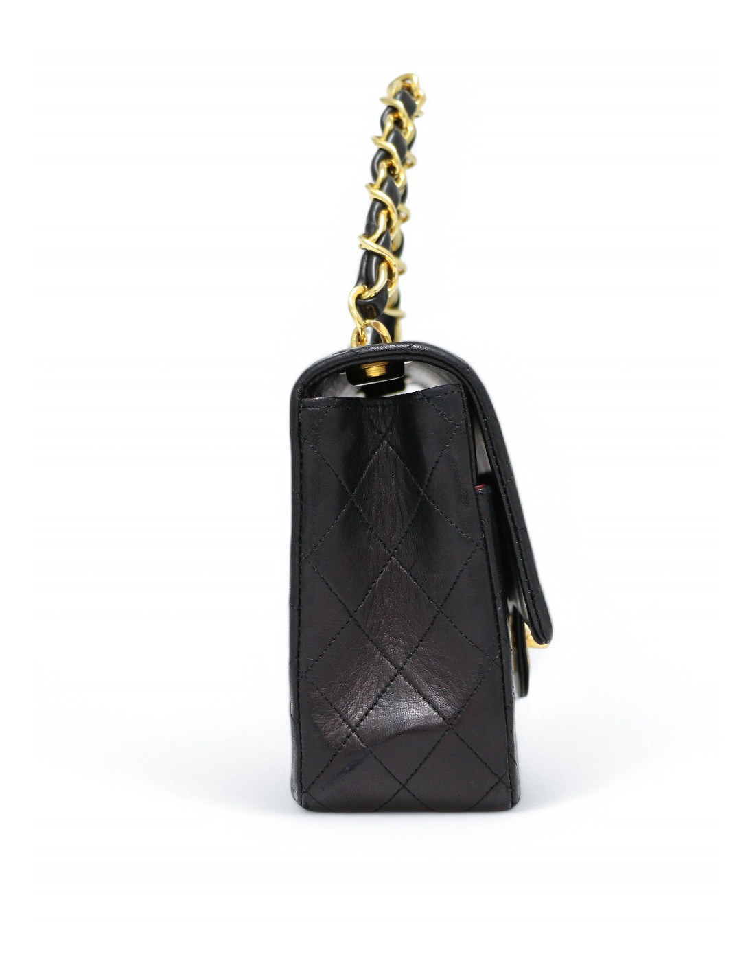Détails : Atypique sac vintage à simple rabat avec son iconique fermoir Turnlock. il est en très bon état, sans aucune usure des coins. Il se porte uniquement à la main avec sa courte anse en cuir entrelacée de de métal dorée, qui rappelle la bandoulière du sac Classique timeless. Un modèle chic et intemporel. Rare dans cet état !