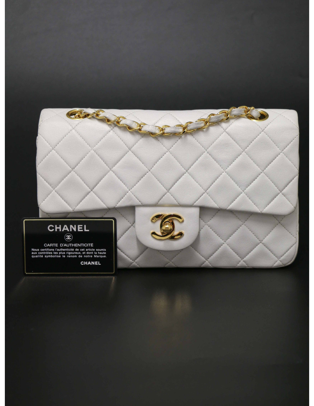 Sac Chanel Timeless 23 blanc bijouterie plaqué or 24K