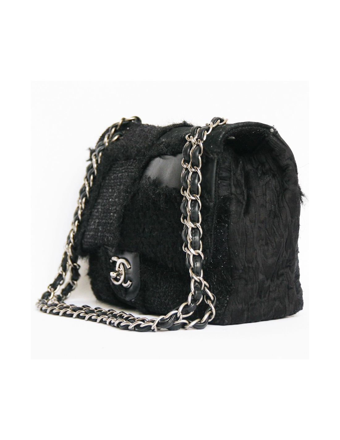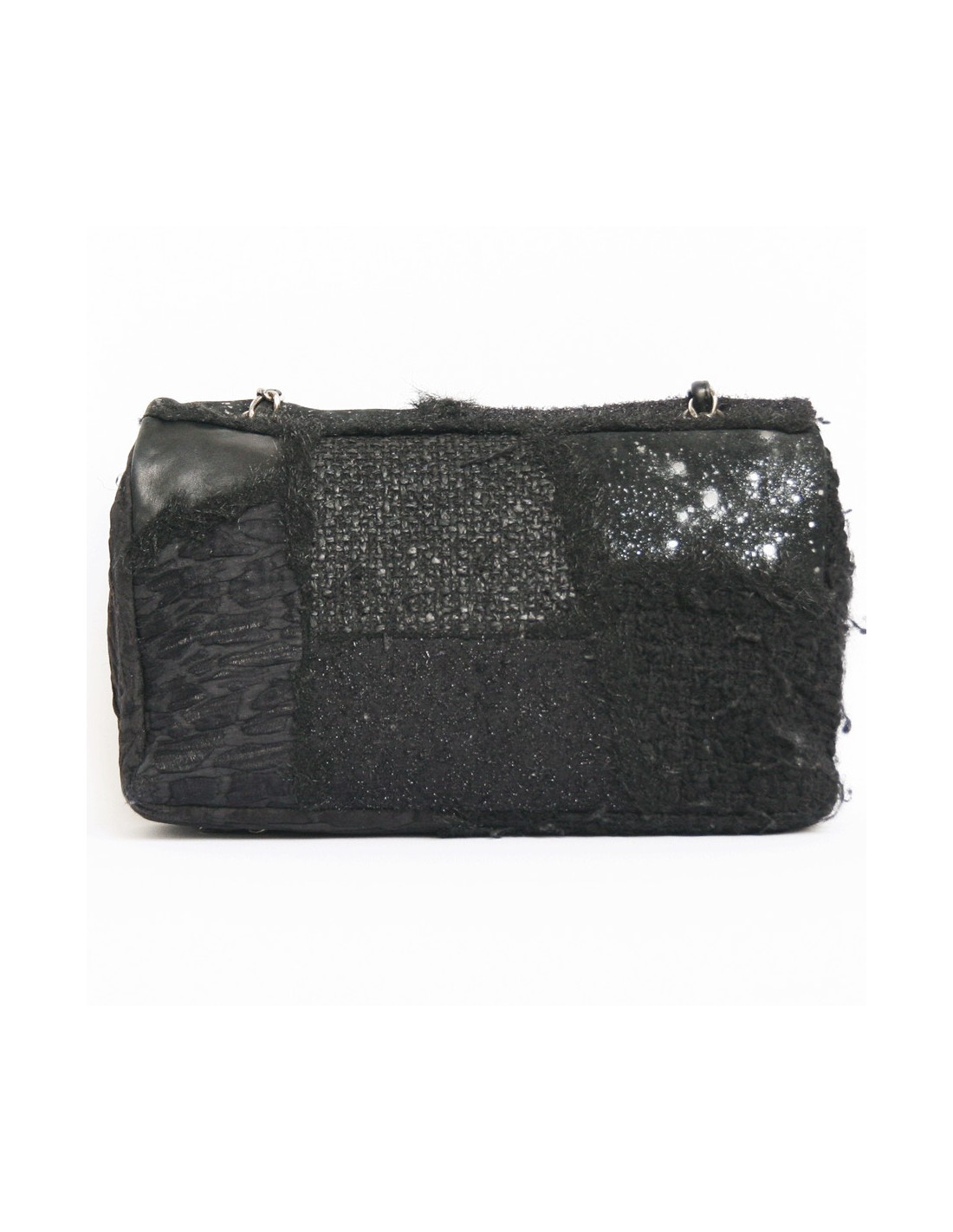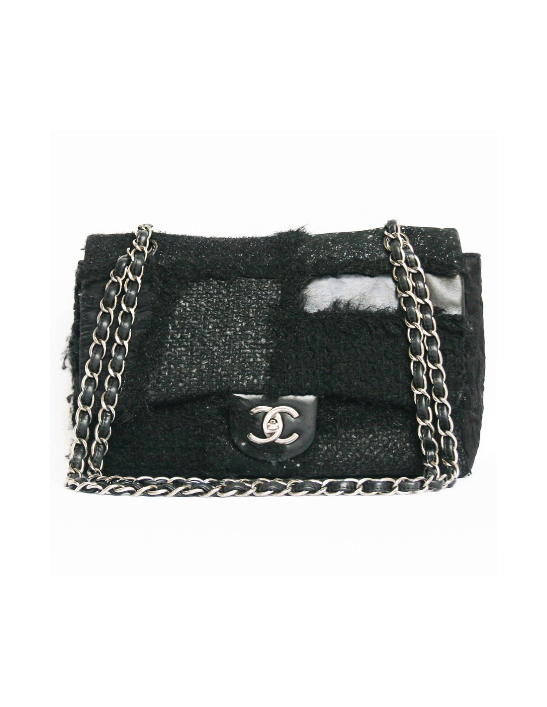 Série limitée hiver 2010, sac CHANEL patchwork en tweed et cuir noir.