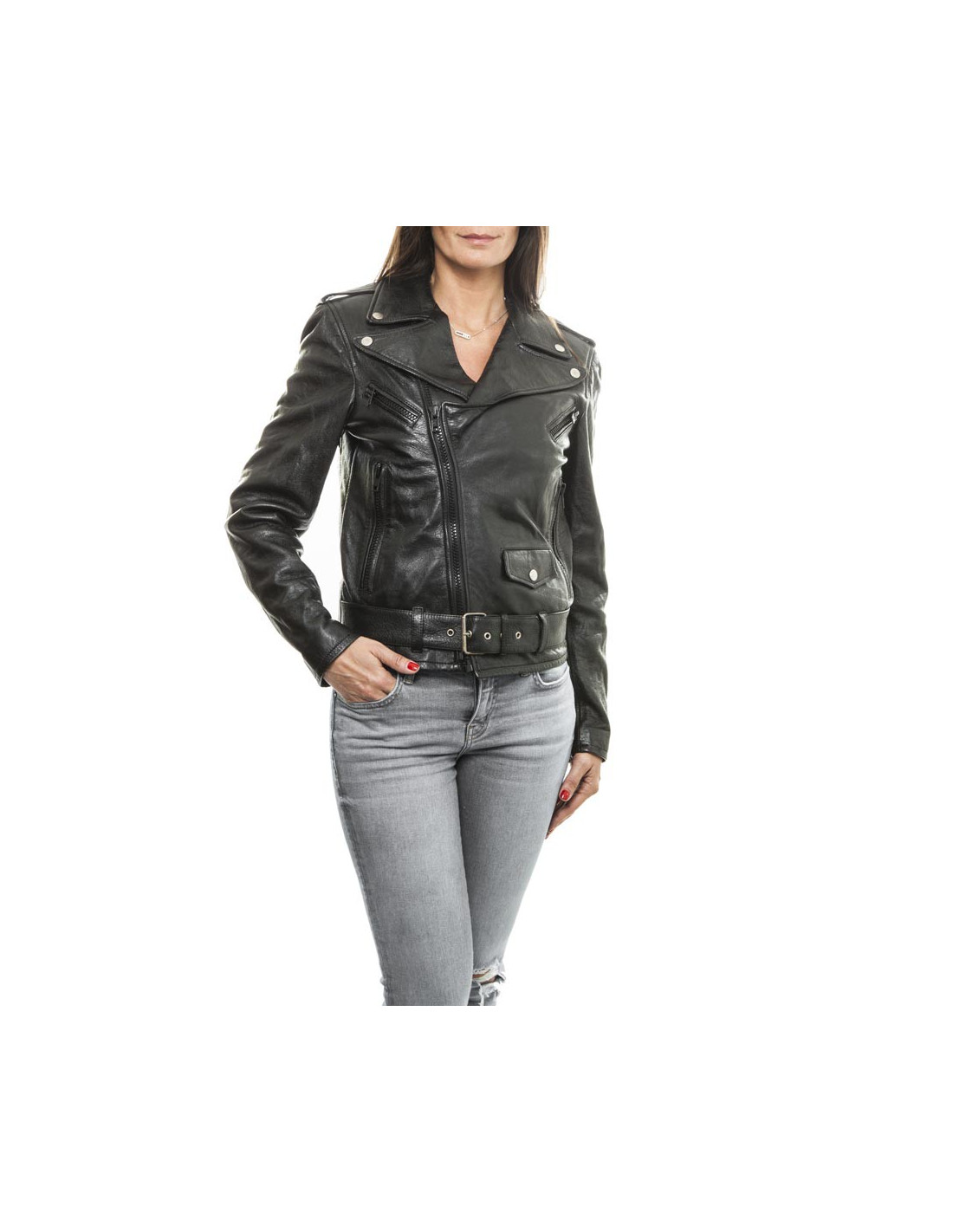 Veste Perfecto zippé, T 38 de la Maison Saint Laurent en cuir d'agneau vieilli noir. Coupe droite, manches zippées. Il a quatre poches zippées extérieures symétriques et une petite poche fermée par pression, deux poches intérieures non fermées de chaque côté de la veste et une ceinture au bas. Doublure noire.