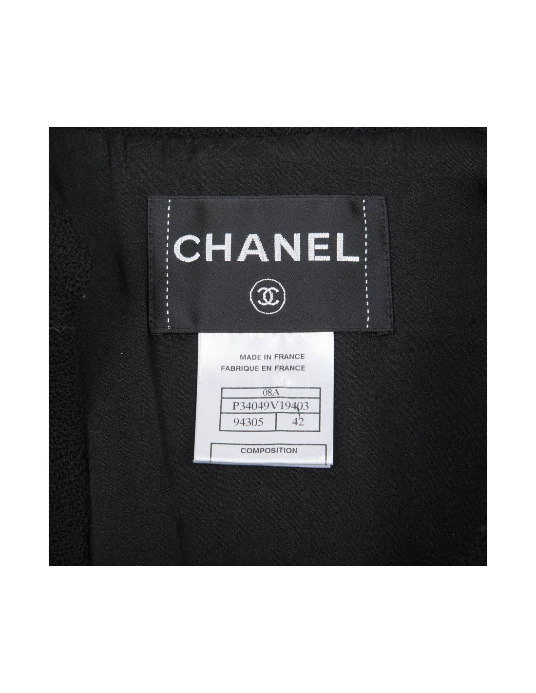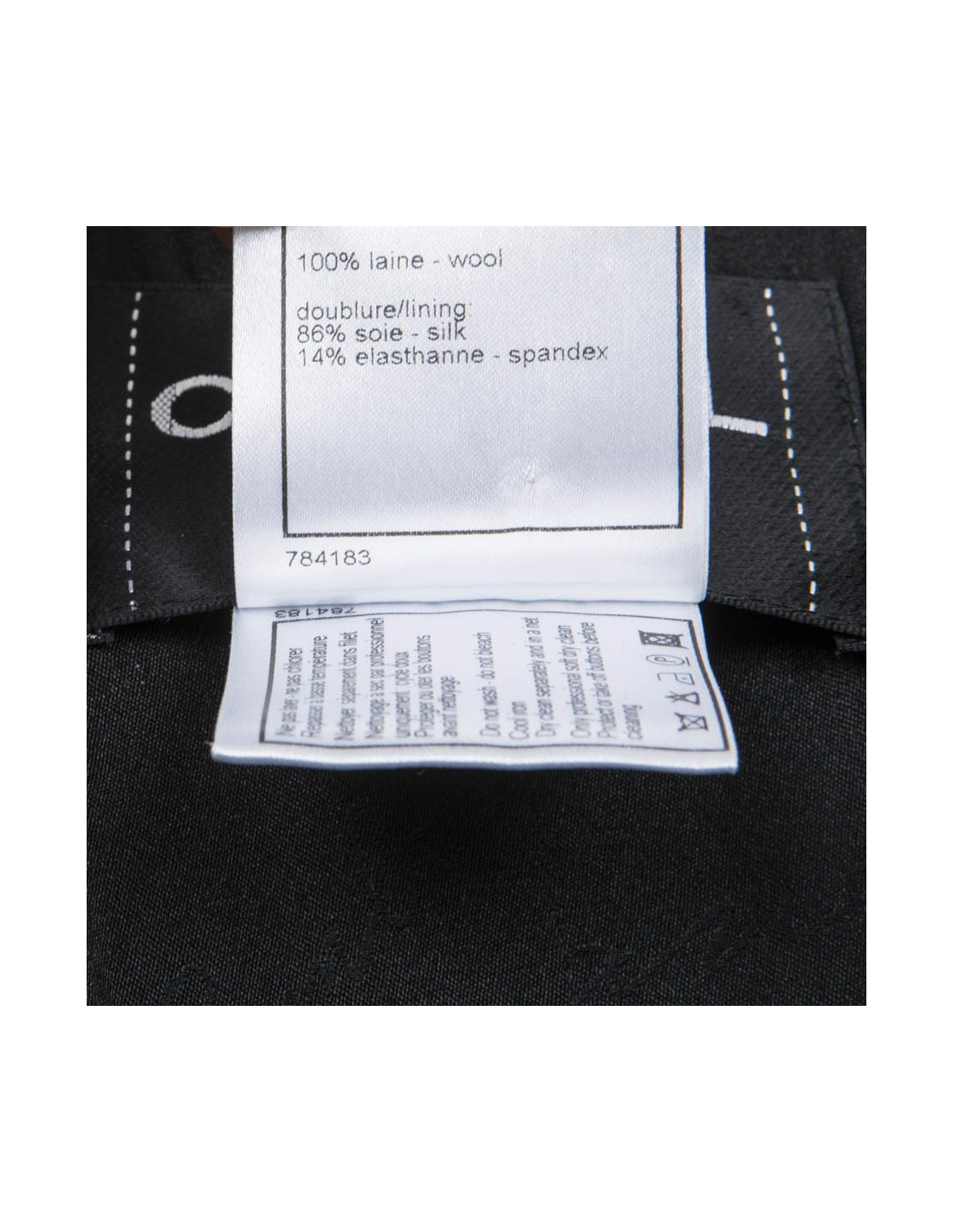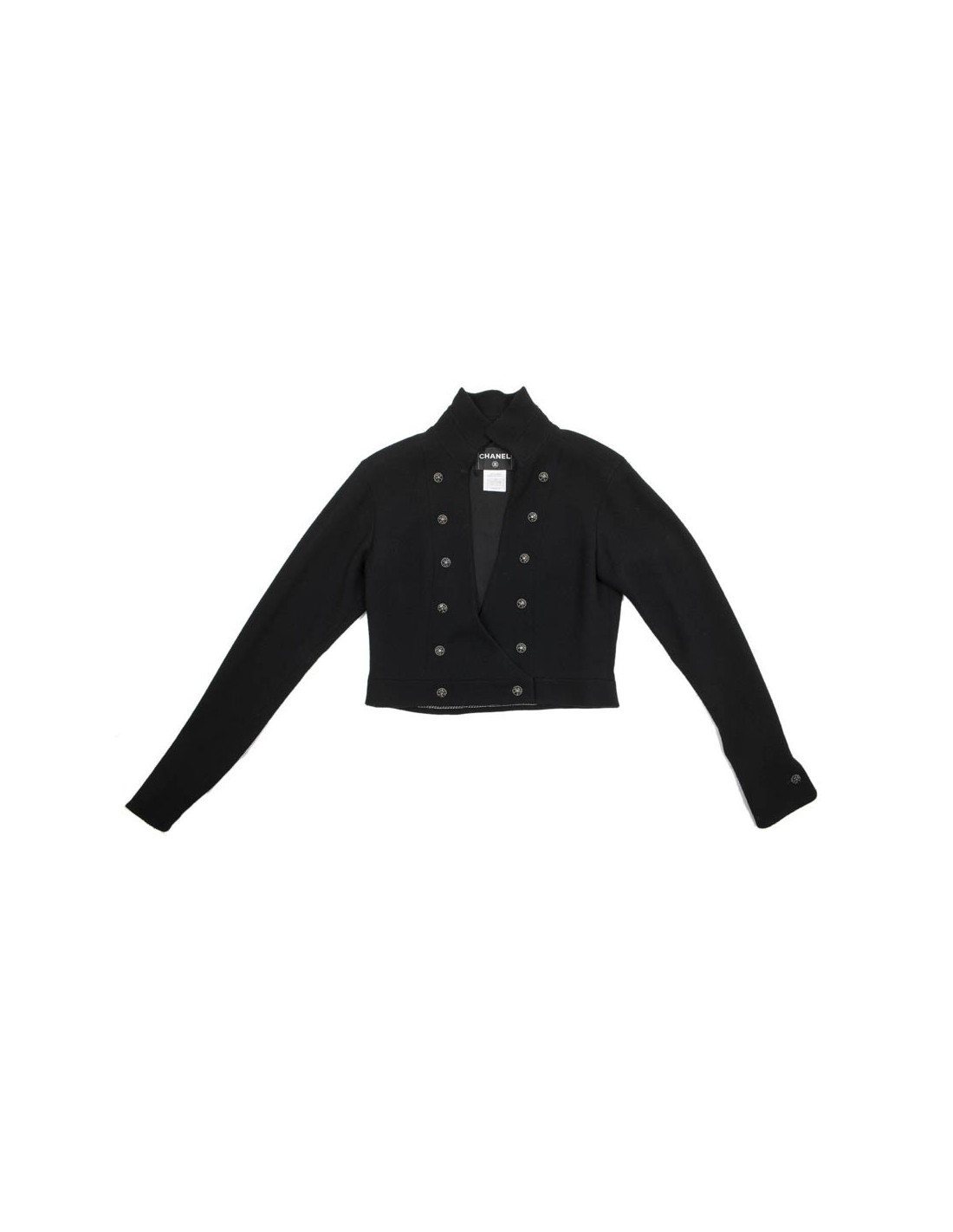 Veste spencer ample Chanel taille 42, en laine noire. Les boutons sont siglés "CC" en métal argent noirci et sur les poignet des boutons de manchette. Elle est doublée en soie noire monogram.