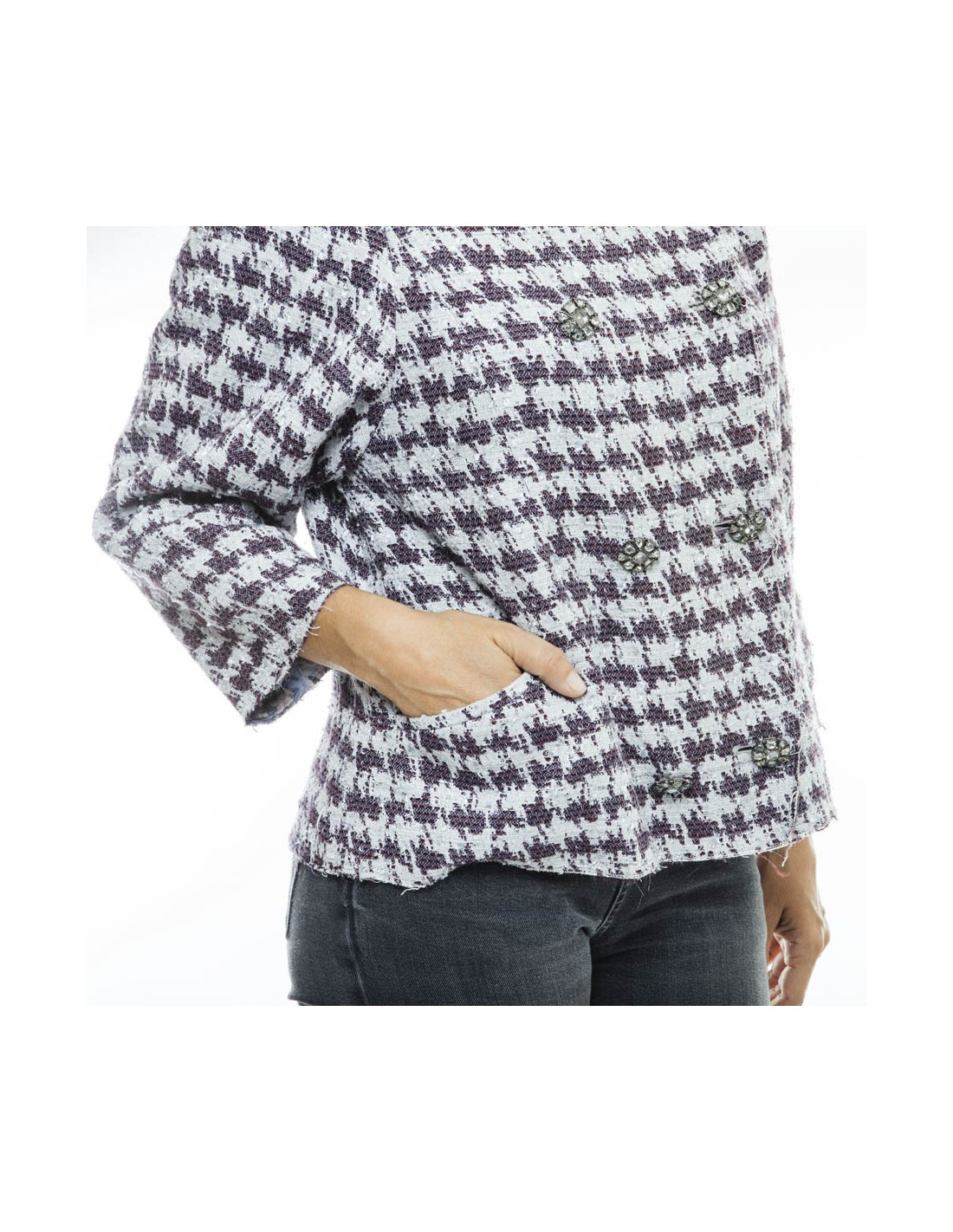 Veste croisée CHANEL T 40 en coton parme et violet