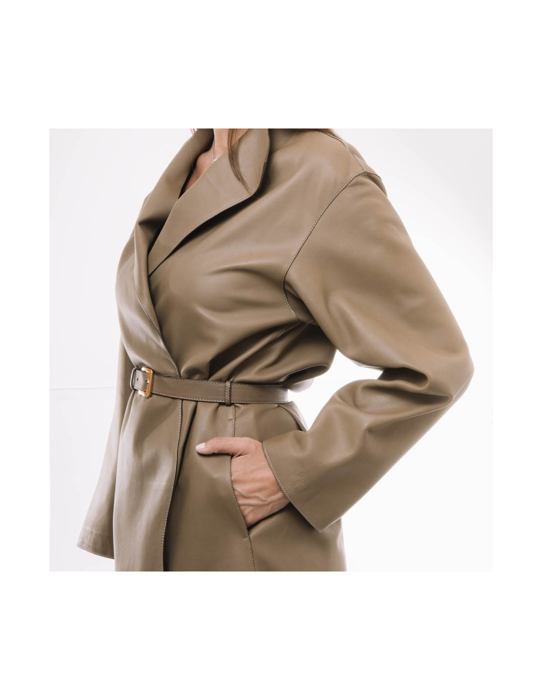 Manteau de la Maison Loro Piana en cuir d'agneau plongé marron. Taille 38. Fermeture par bouton pression avec possibilité de le porter avec une ceinture.
