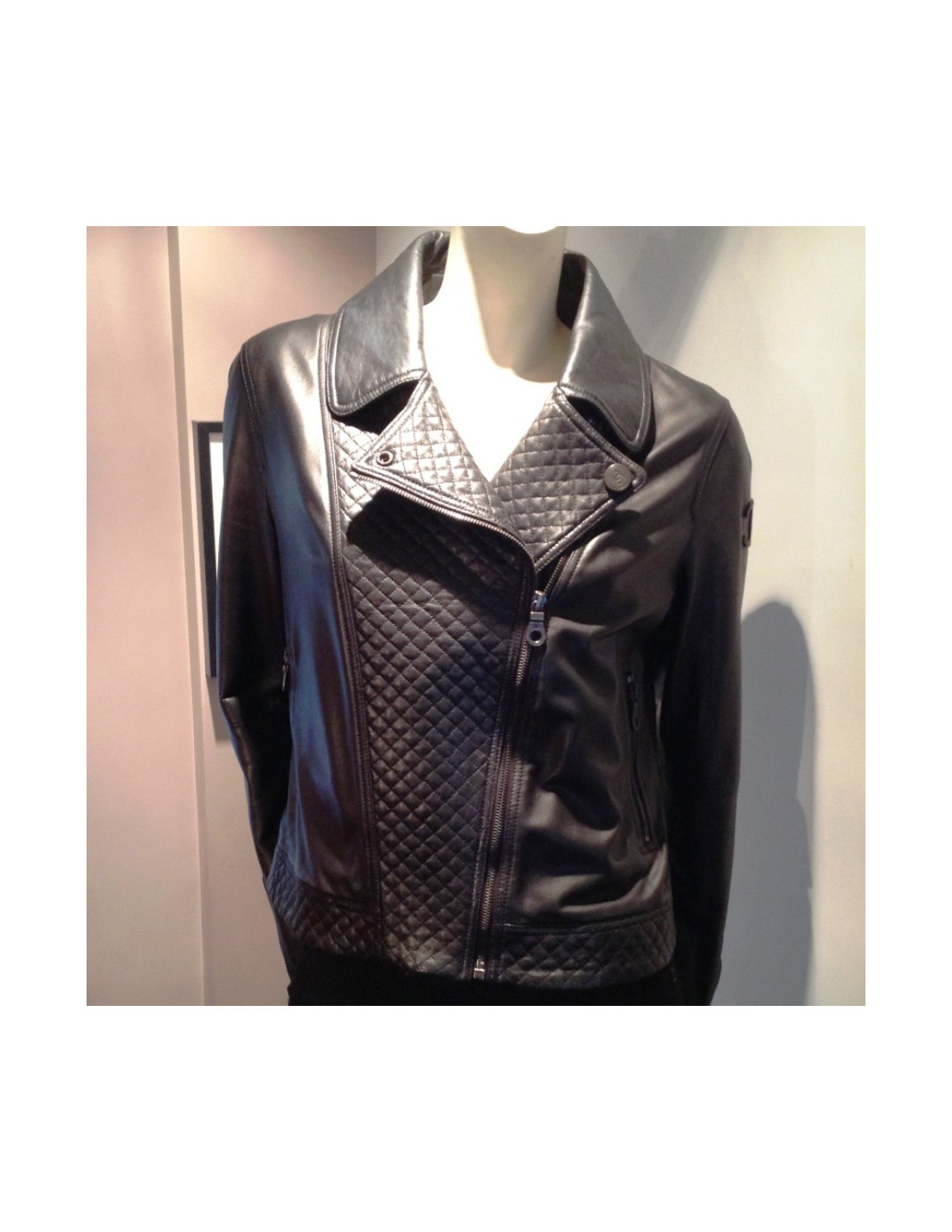 Perfecto CHANEL cuir et cuir matelassé noir