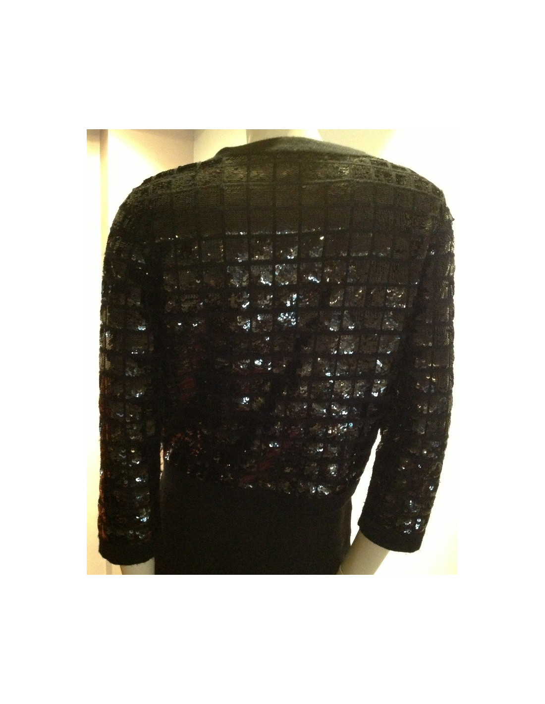 Gilet CHANEL en cachemire brodé de sequins noirs