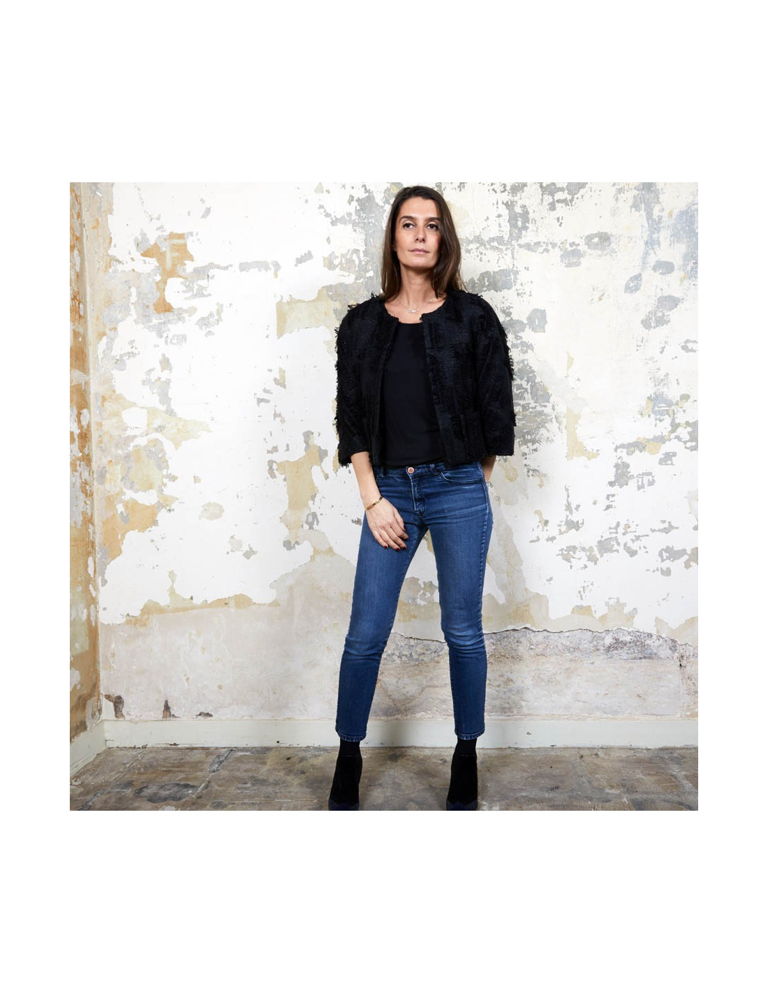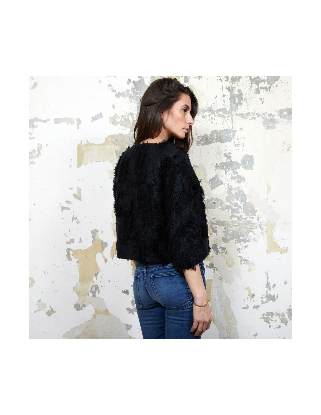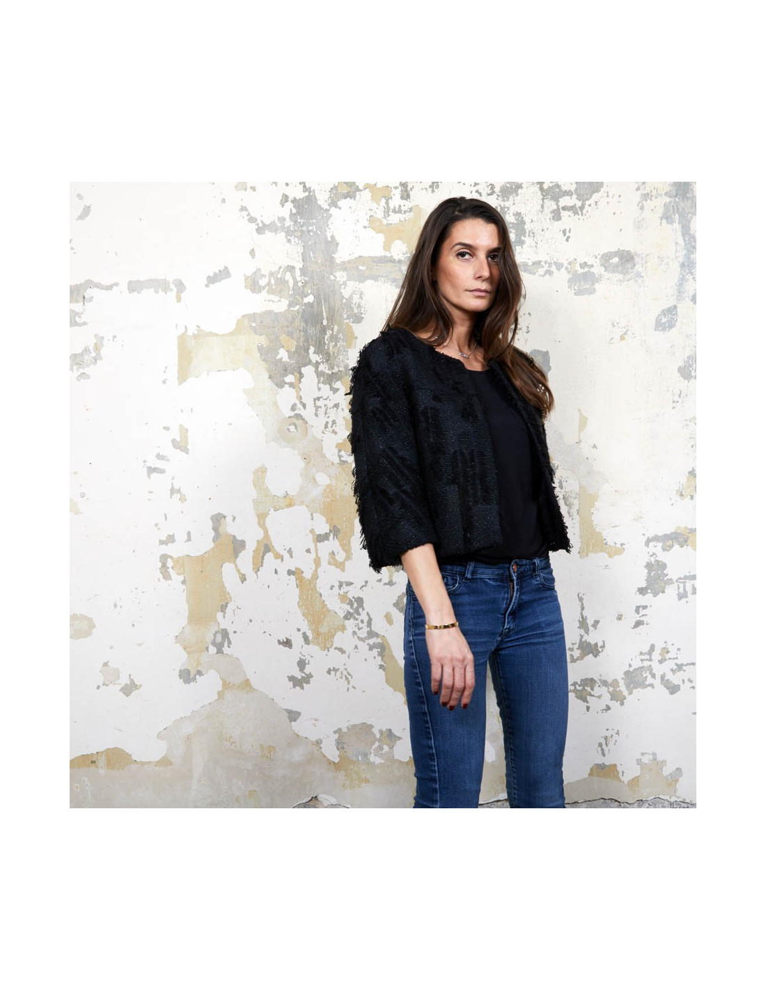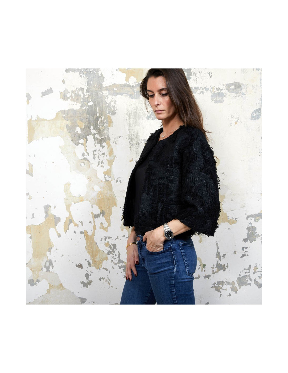 Veste courte Taille 38 noire de la Maison Chanel neuve. Doublure en soie noire monogram.