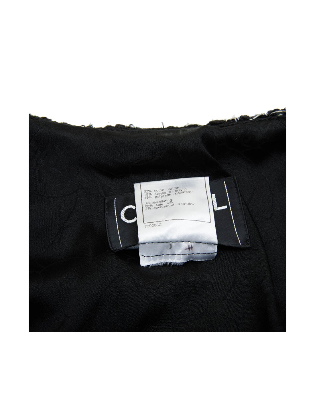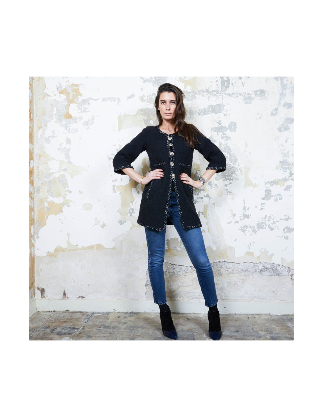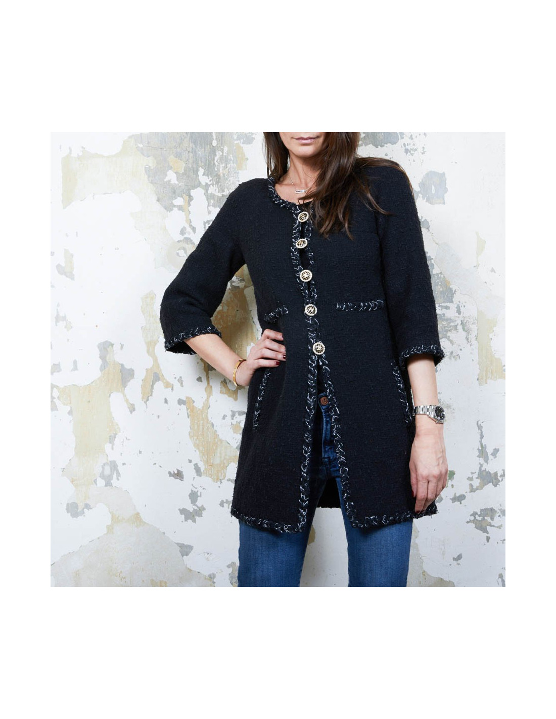 Iconique veste longue T 34 Chanel en tweed noir. Collection Printemps 2007. Made in France.