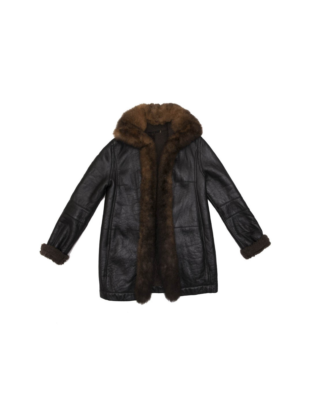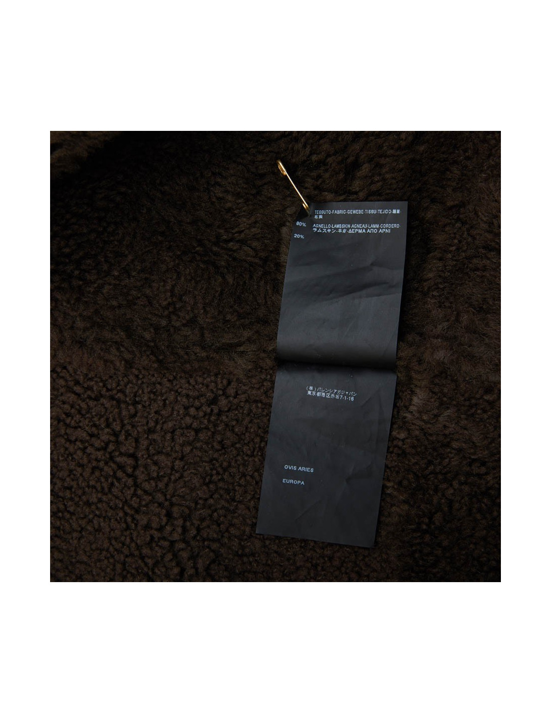 Manteau mi-long Balenciaga en cuir d'agneau retourné et cuir vieilli marron taille 40. Made in Turkey.
