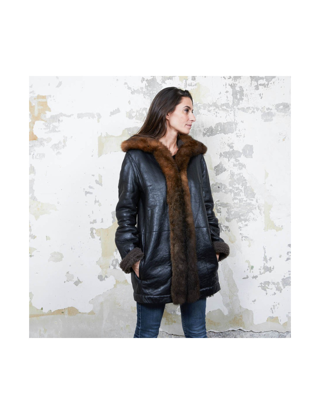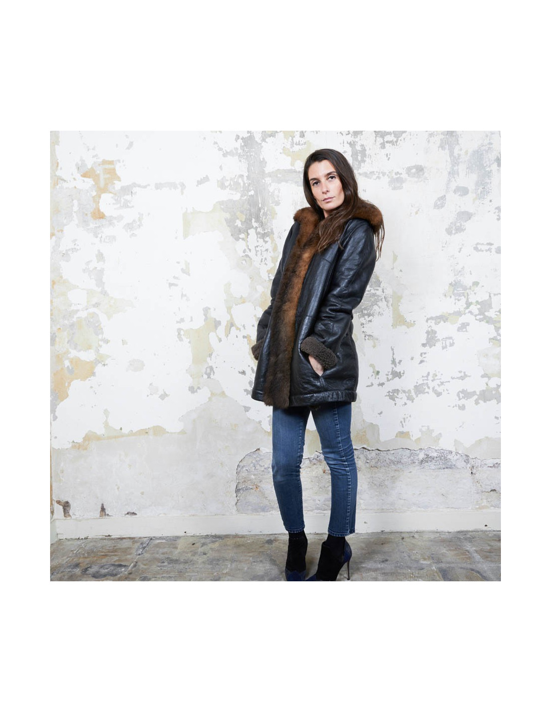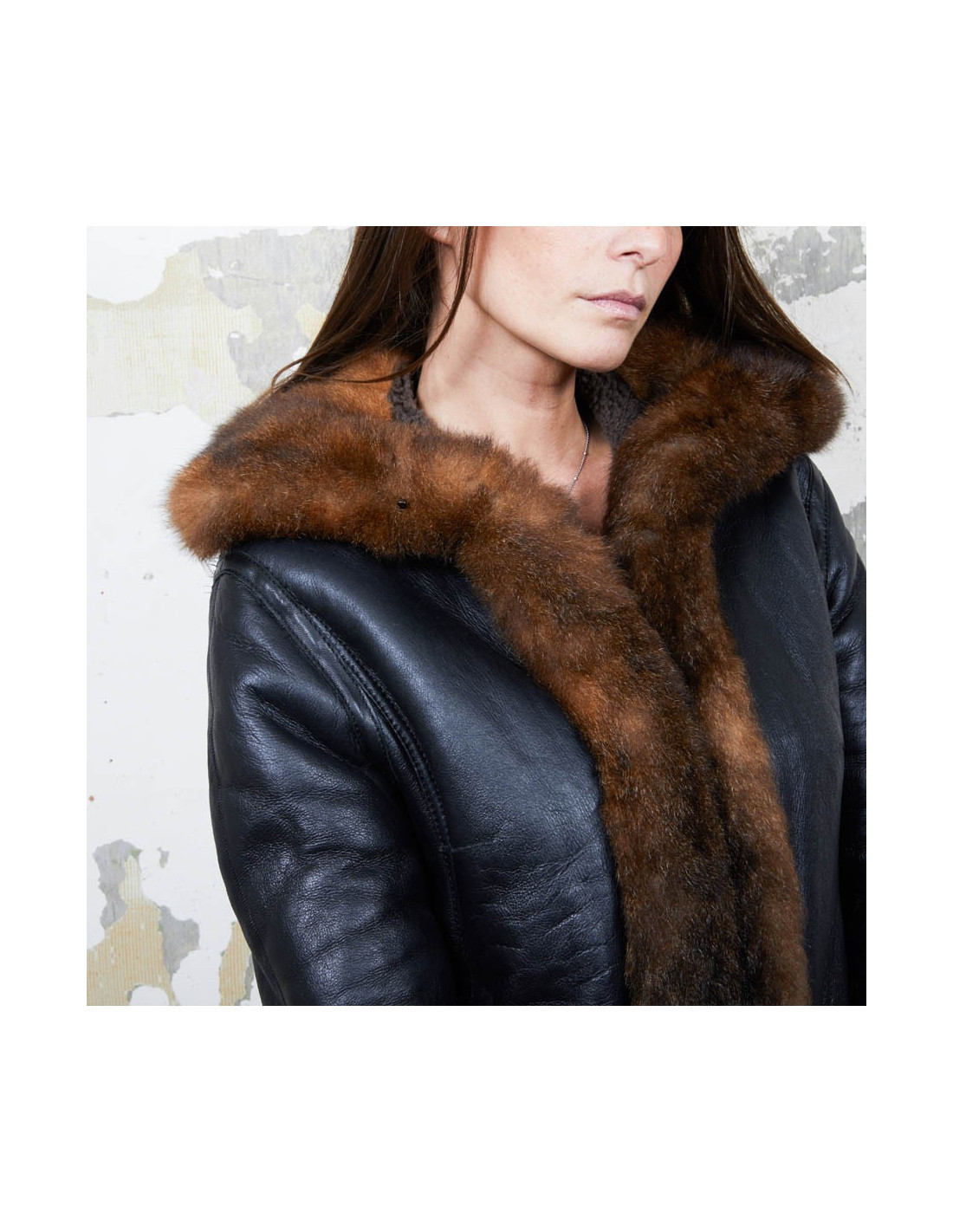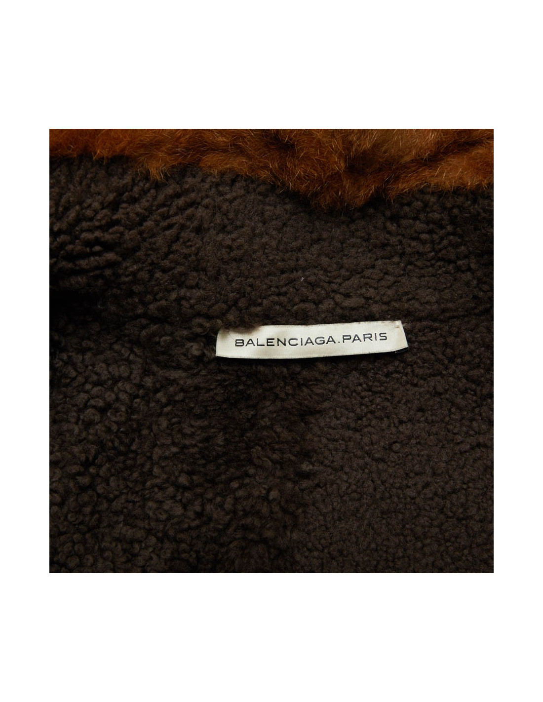 Manteau mi-long T 40 BALENCIAGA cuir d'agneau retourné et cuir vieilli marron