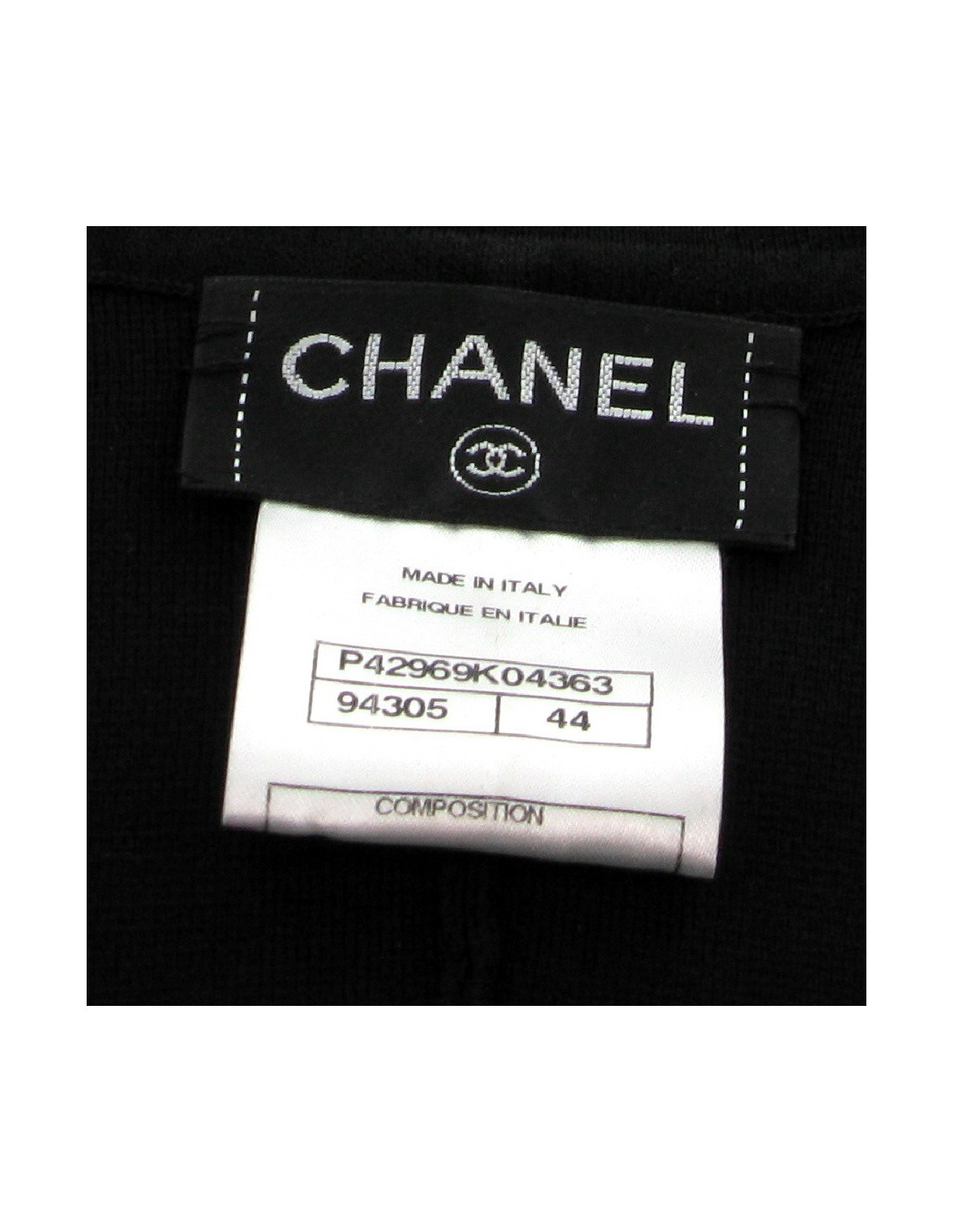 Veste sans manches CHANEL T44 noire. Collection Croisière. Elle se ferme à l'aide d'un bouton en métal argent vieilli siglé CC. Il y a deux poches. Elle est maintenue par des épaulettes, amovibles si nécessaire.