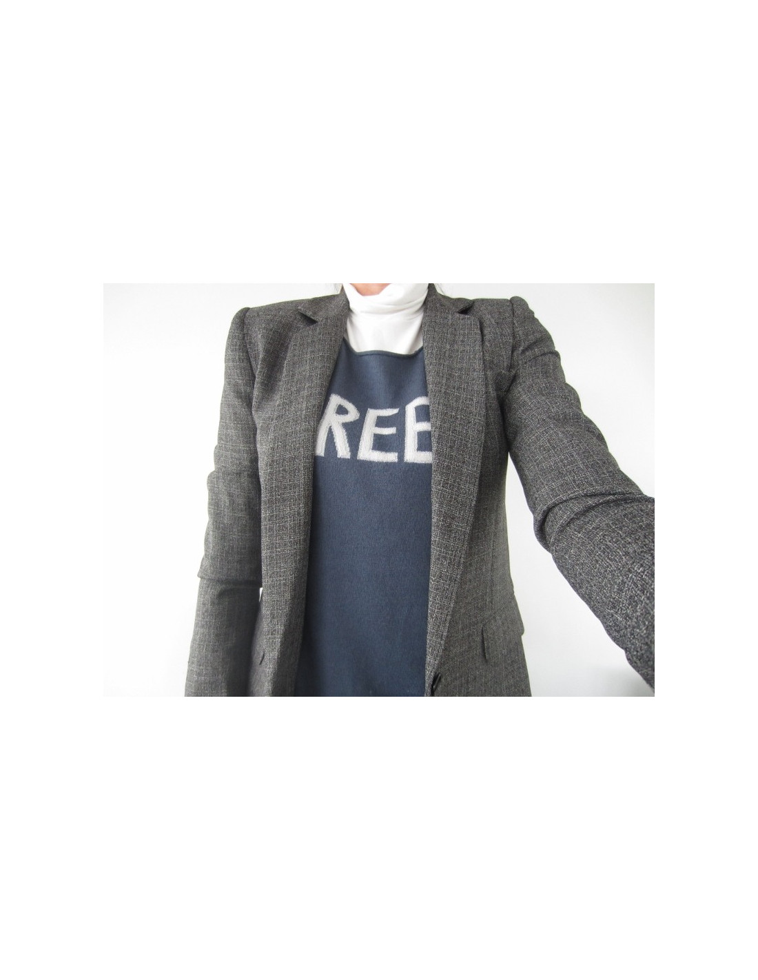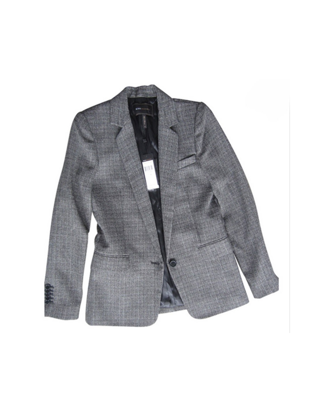 Veste cintrée noire & blanche, fermeture un bouton, 5 boutons aux manches, une poche exterieure cousue et une intérieure. Jamais portée, coupe très actuelle