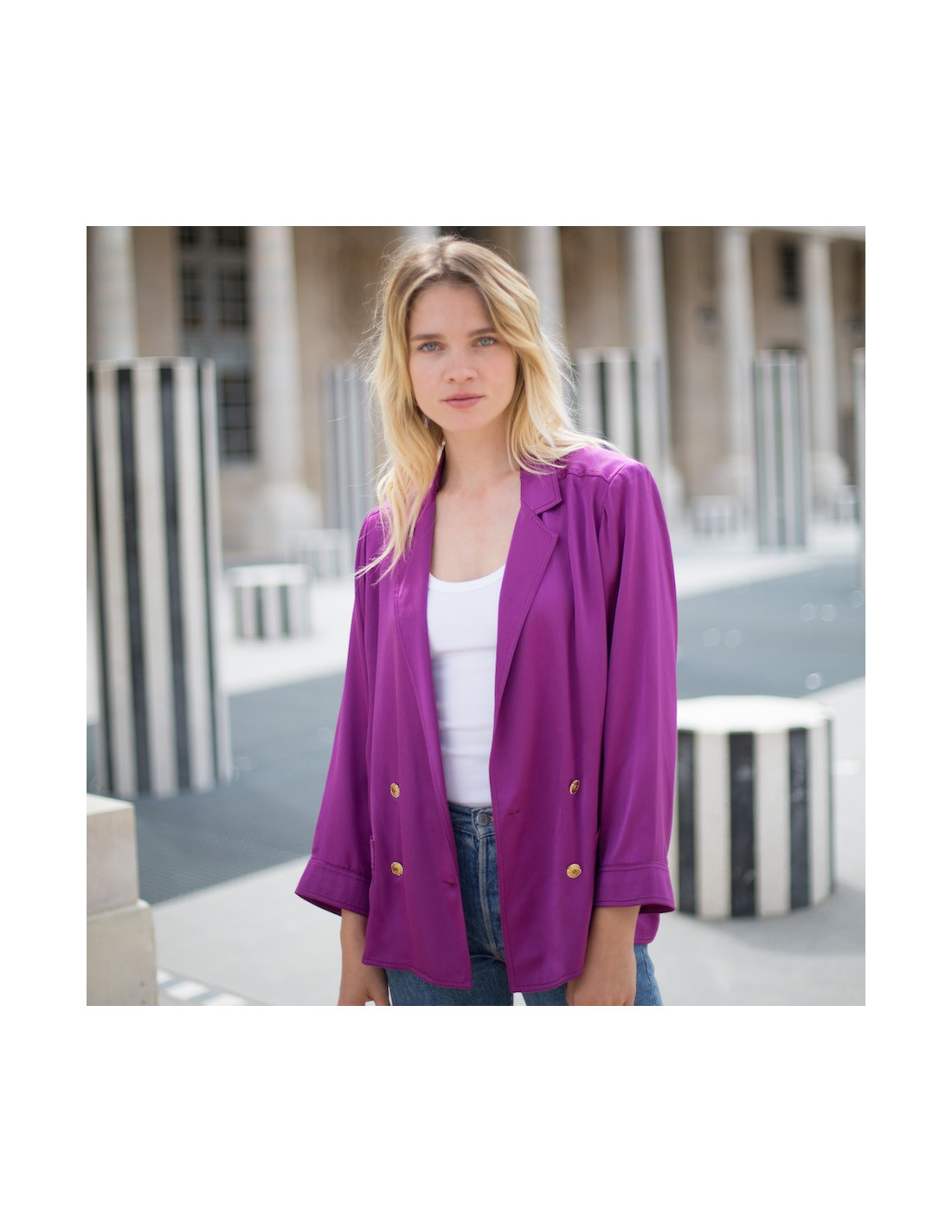 Veste CHANEL soie violette T38 boutons dorés