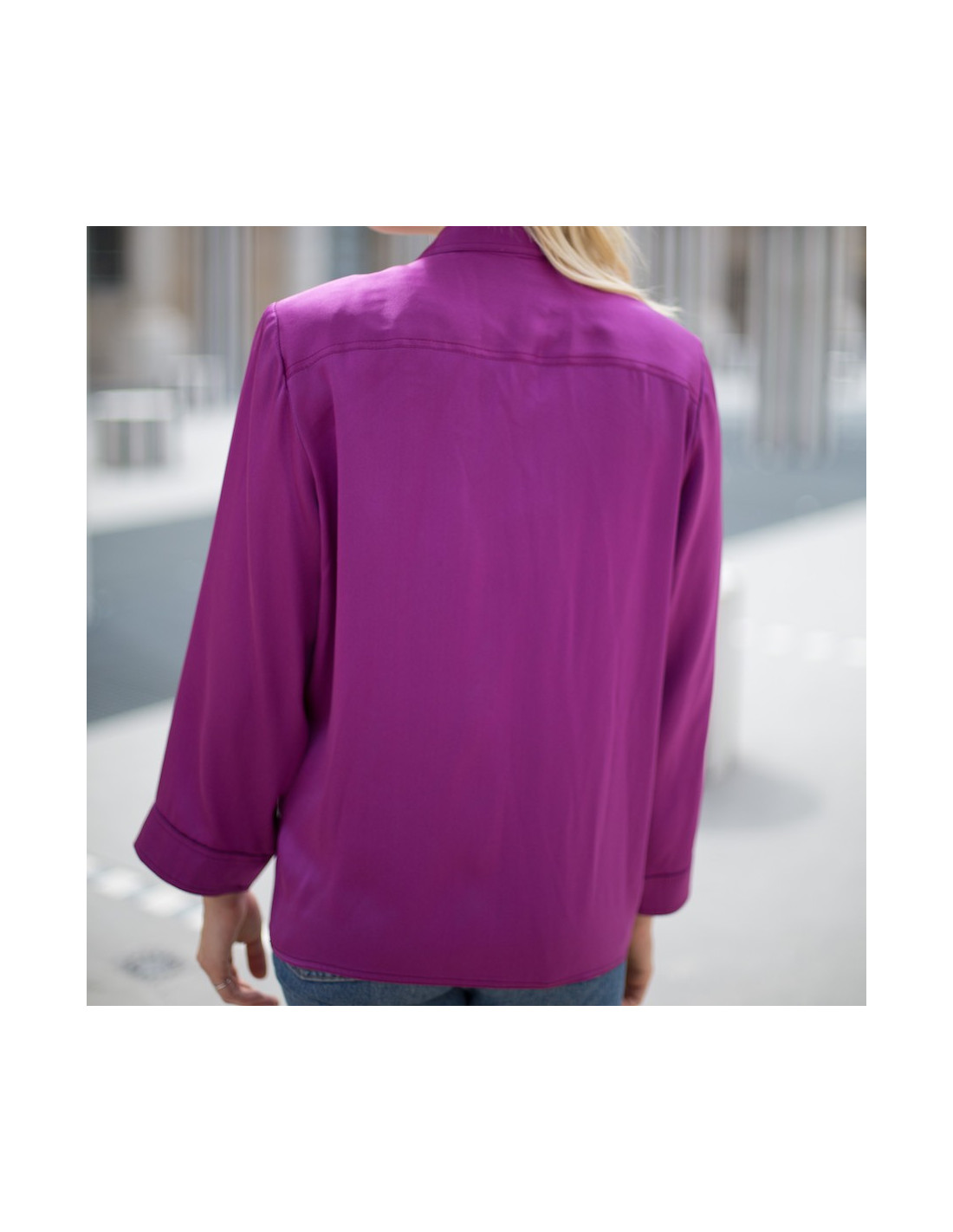Veste CHANEL soie violette T38 en quelques détails