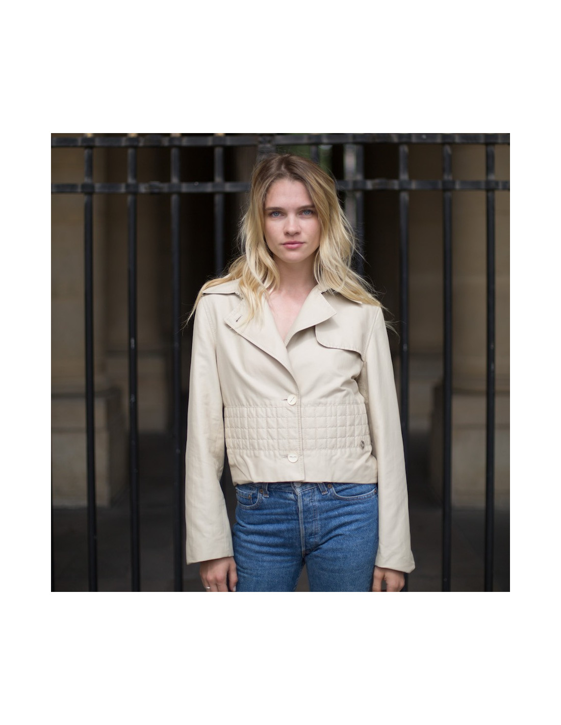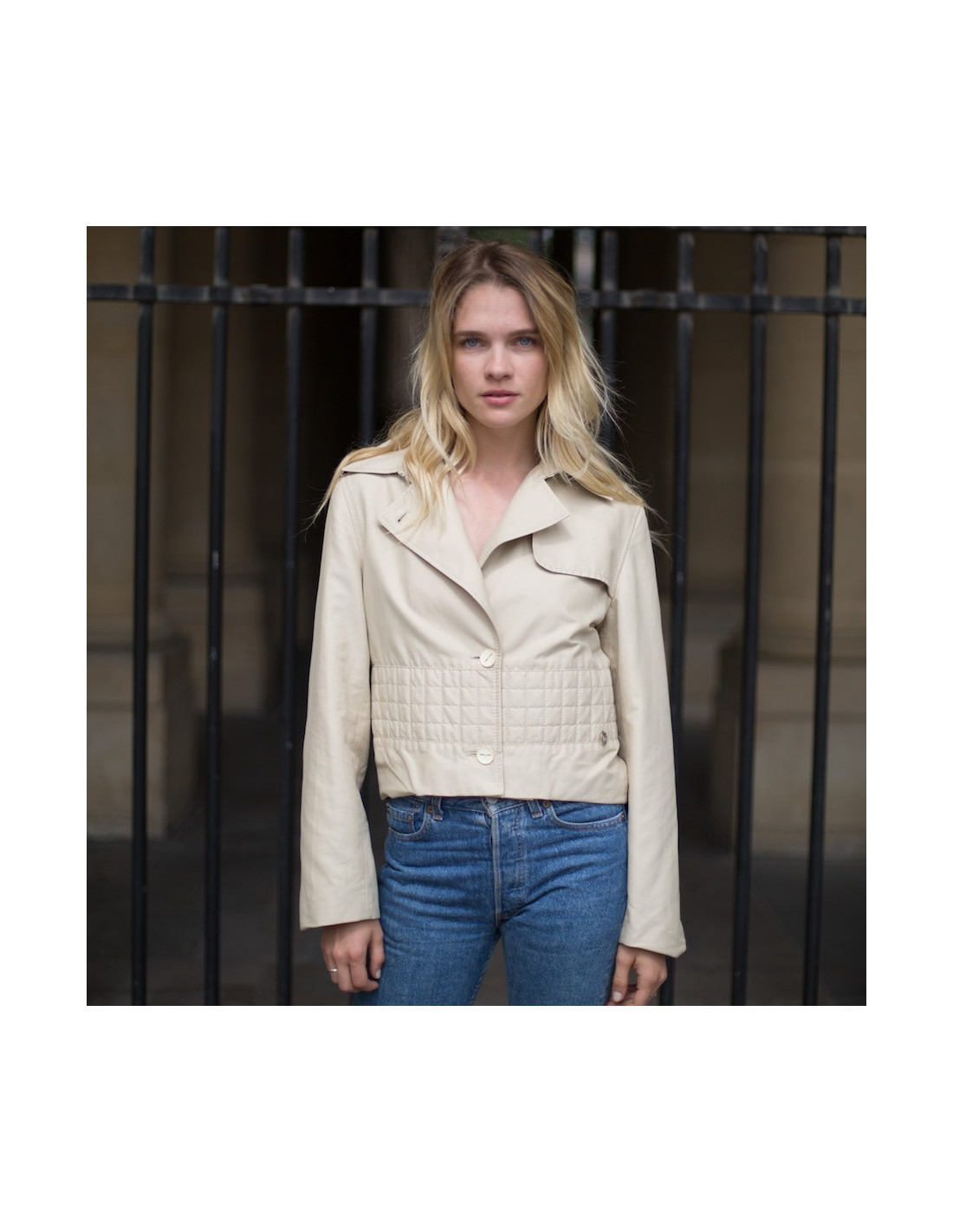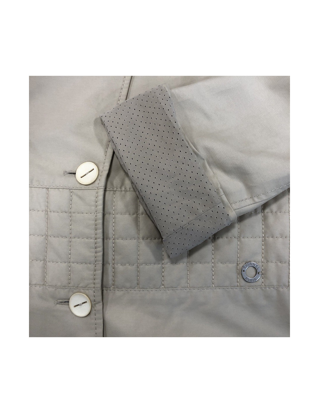 Veste imperméable CHANEL beige pour les premiers jours d'automne, en détails