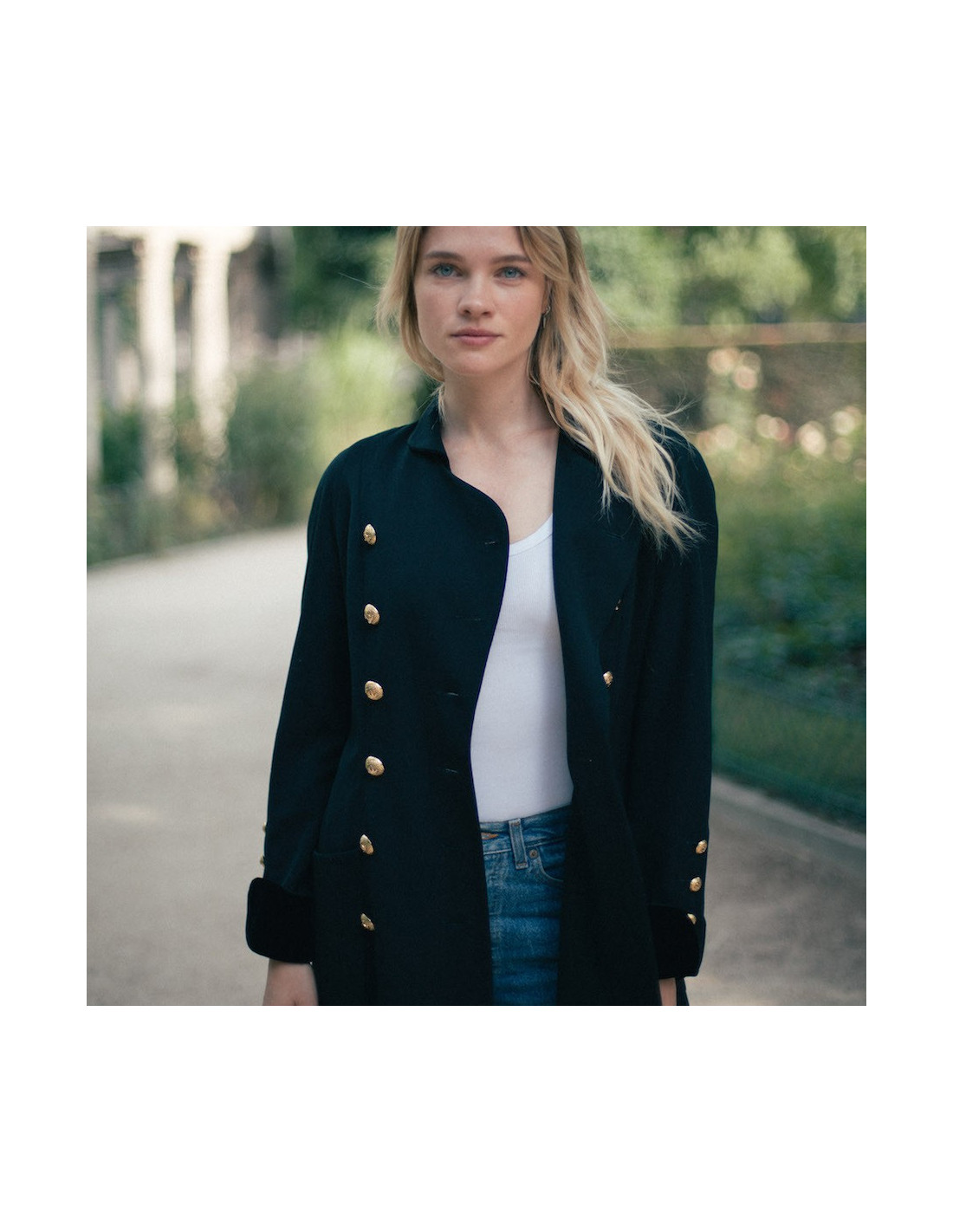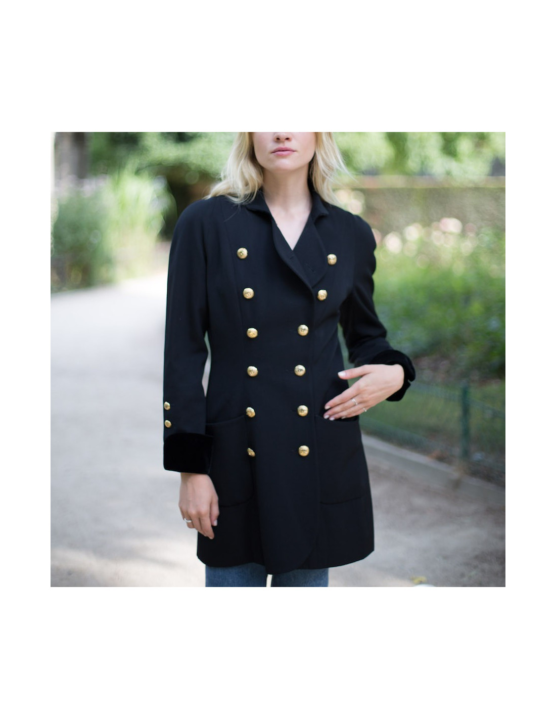 Veste longue croisée CHANEL d'occasion, en détails