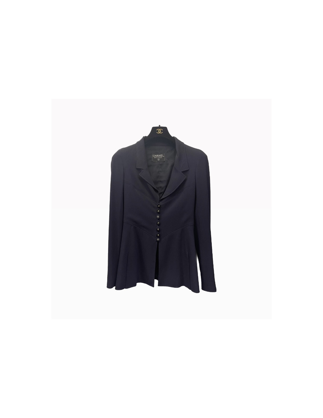 Derniers articles en stock VESTES Veste T40 CHANEL Vintage CHANEL 35684 3 700,00 € Veste T40 CHANEL boutons CC Condition : très bon étatPays de fabrication : FranceTaille : 40Matière : tweedDoublure : soie noire monogramméeCouleur : bleu marine, noir, écruDimensions à plat : épaules 40 cm, sous la poitrine 48 cm, hauteur 72 cm, longueur des manches 55 cm, tour de poignet 25 cmAnnée : vintageDétails : deux poches, magnifiques boutons... Ajouter au panier
