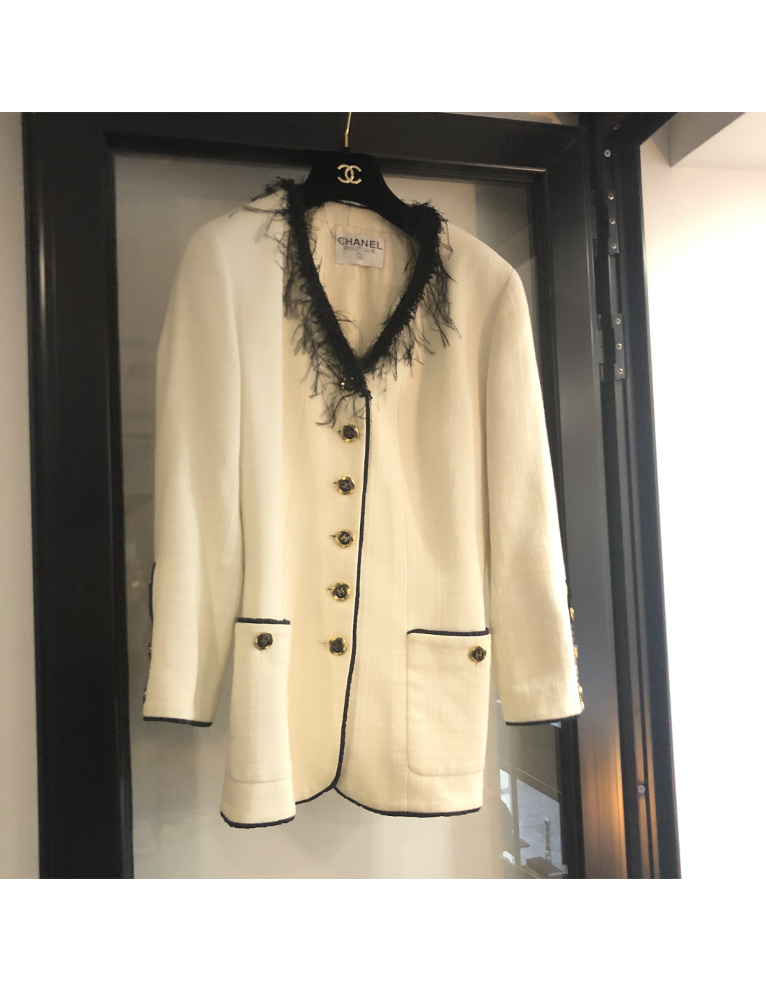 Nouveau Derniers articles en stock VESTES Blazer CHANEL dentelle T38 croisé coton noir CHANEL 38515 4 200,00 € Blazer CHANEL dentelle T38 broderiesCondition : très bon étatPays de fabrication : FranceTaille : 38 frMatière : cotonDoublure : soieCouleur : noirDimensions à plat : épaules 42 cm, sous la poitrine 48 cm, hauteur 68 cm, longueur des manches 62 cm, tour de poignet 26 cmAnnée : Printemps 2021Détails : veste croisée à deux poches en dentelle noire ornée du... Ajouter au panier