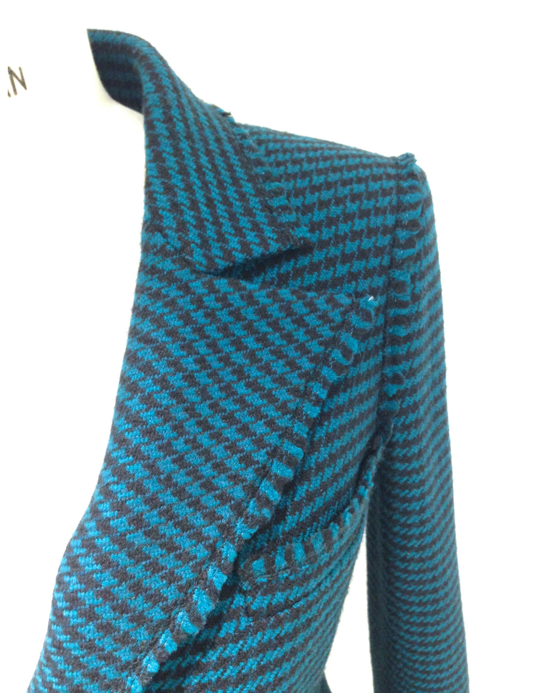 Veste CHANEL en tweed pied de poule bleu canard et noir T36
