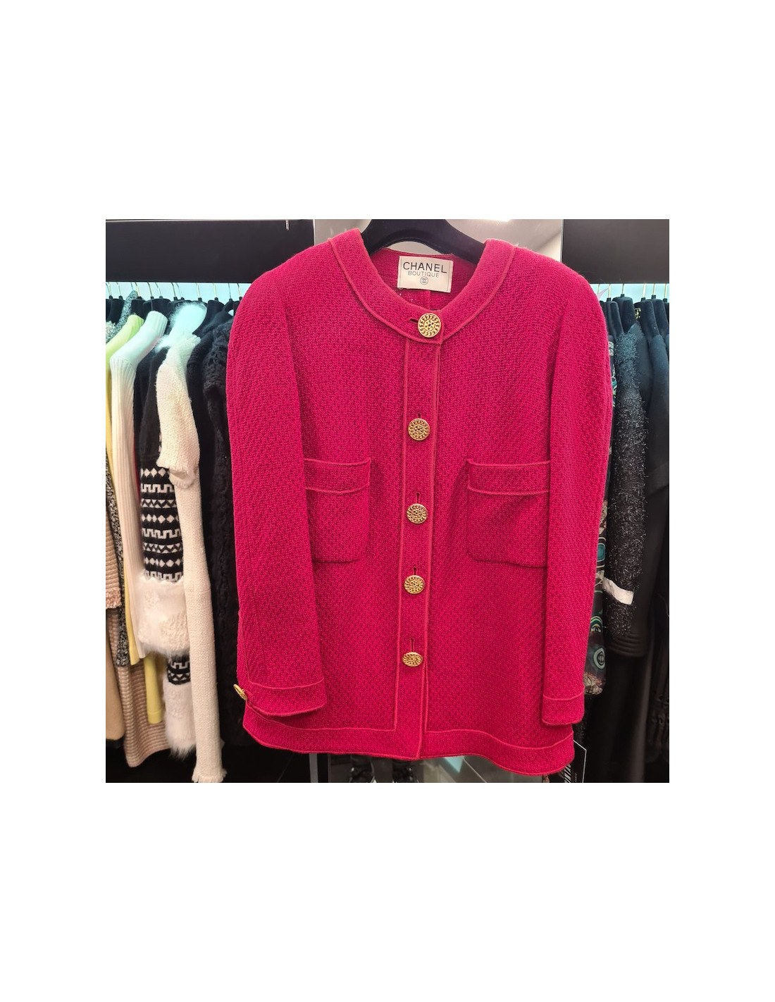 Derniers articles en stock VESTES Veste rose CHANEL T 38 CHANEL 36906 4 900,00 € Veste rose Chanel tweed Condition : très bon étatPays de fabrication : FranceTaille : 38Matière : coton, polyamideDoublure : soieCouleur : rose, blanc, noirDimensions à plat: épaules : 38 cm, sous la poitrine : 42 cm, hauteur : 54 cm, longueur des manches : 42 cm, tour de poignet : 23 cmAnnée : Printemps 2014Détails : veste en tweed rose, blanc et noir.... Ajouter au panier