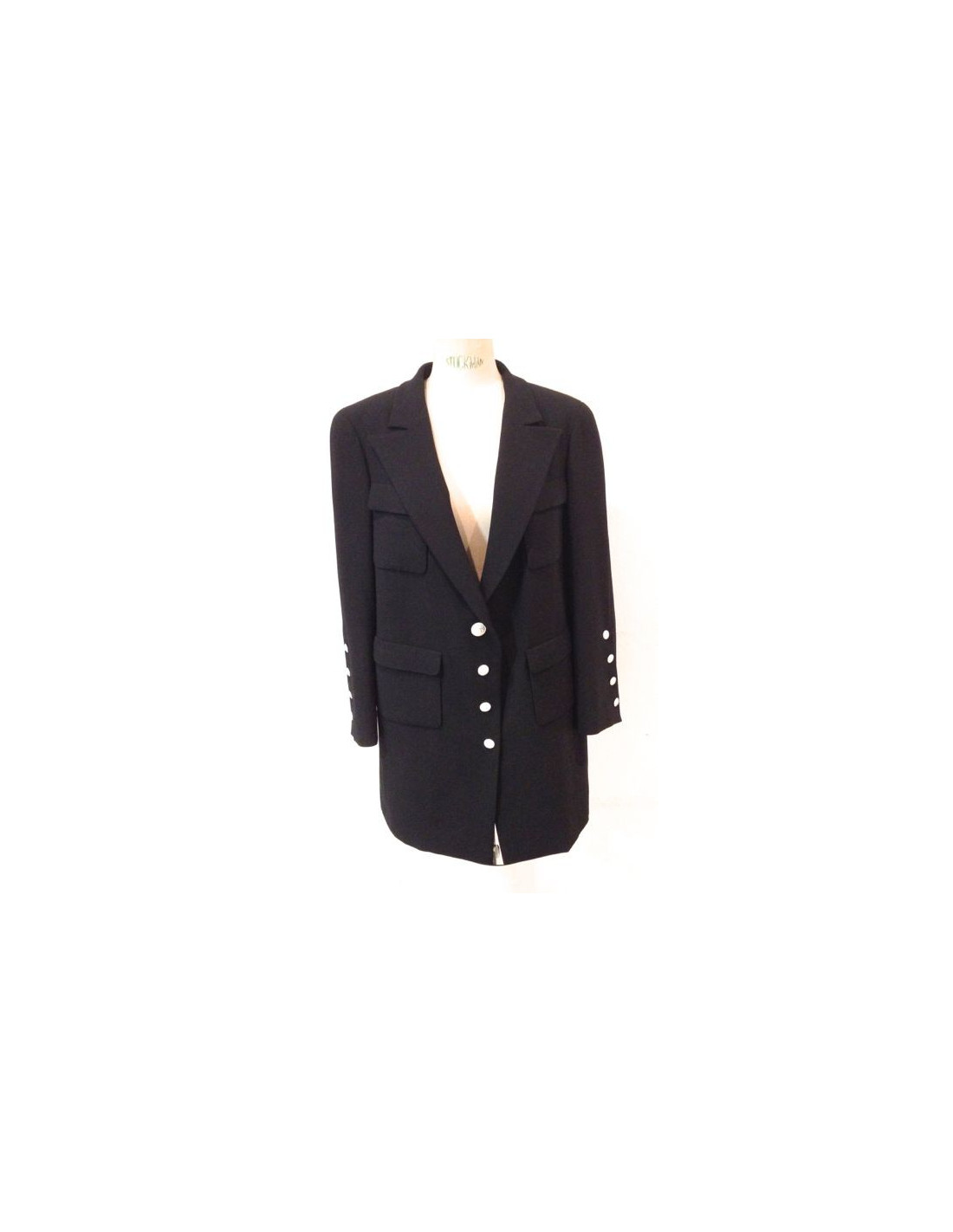 Veste CHANEL safari noire avec boutons blancs